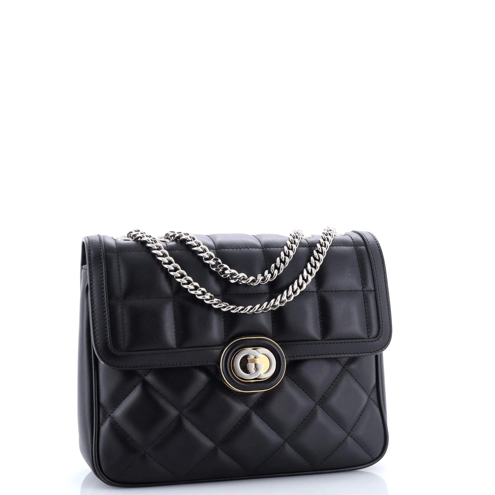 Gucci Deco Chain Flap Bag Mixed Matelasse Leather Small