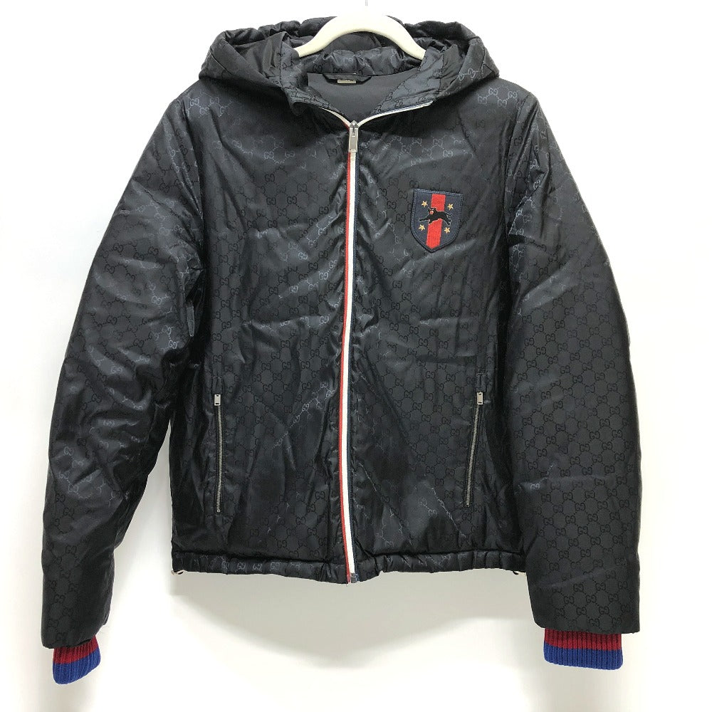 Gucci Down Jacket 452434 Nylon, Down Black Gg Nylon Emblem Mens 44