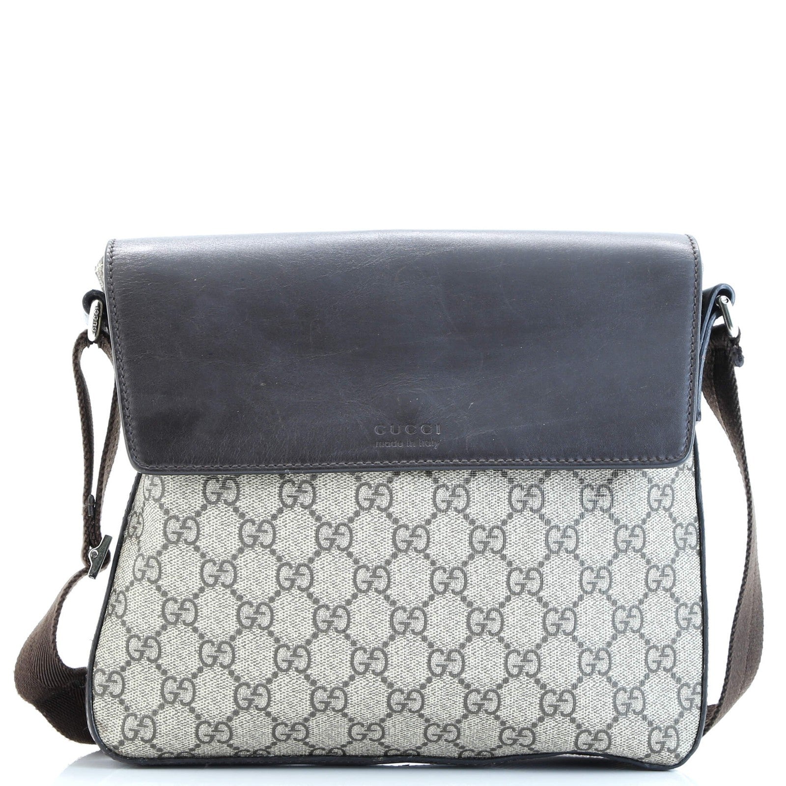Gucci Flap Messenger Bag Gg Coated Canvas With Leather Medium