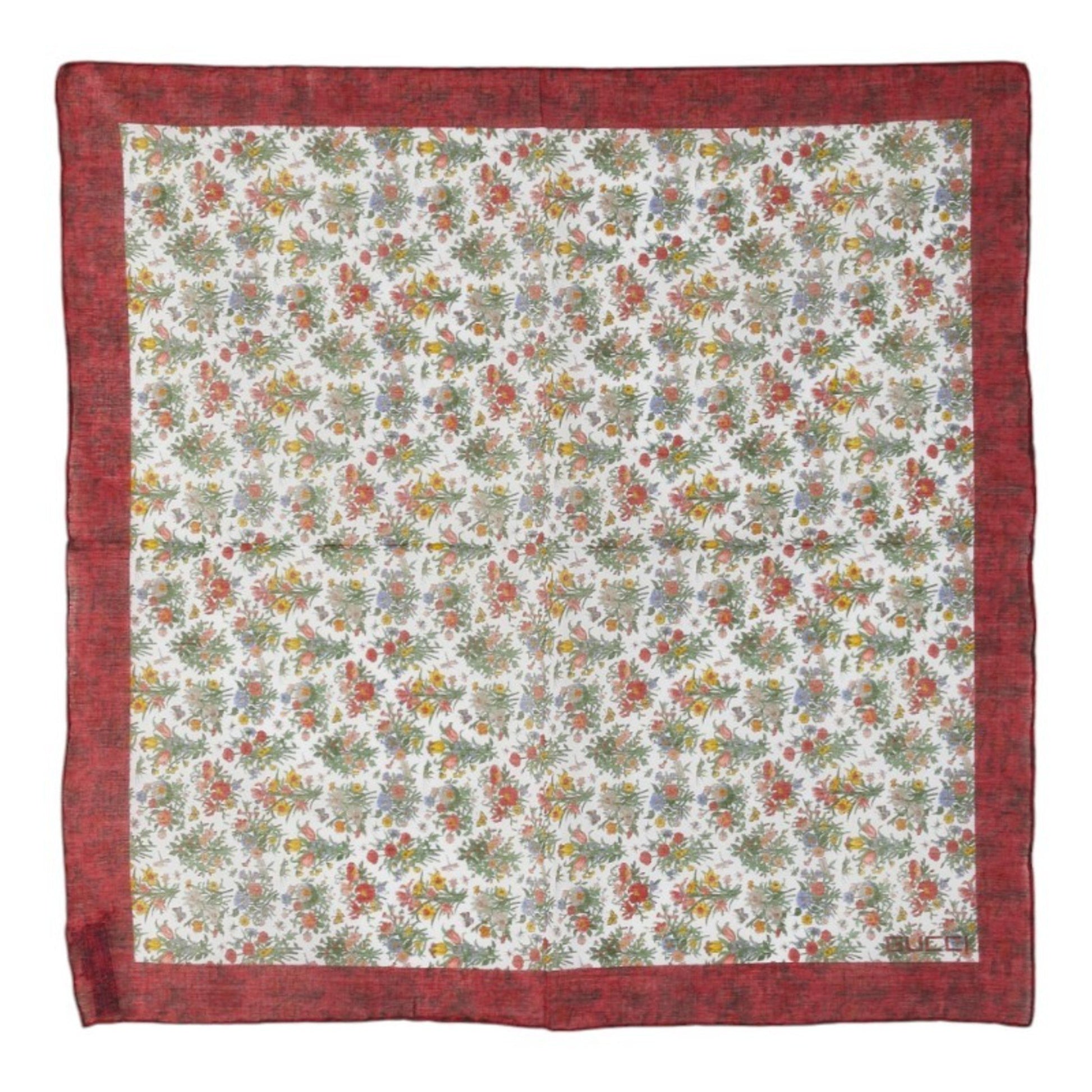 Gucci Floral Botanical Print Scarf/Muffler/Handkerchief In Red