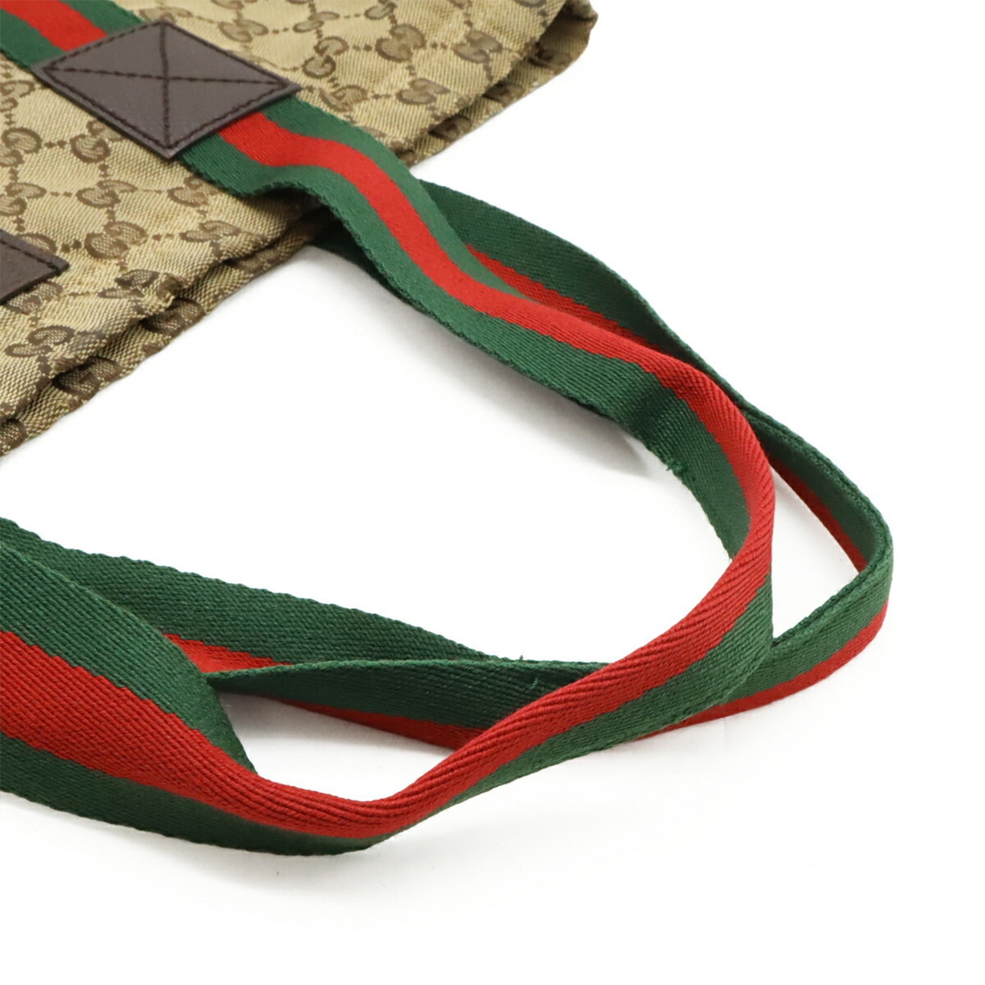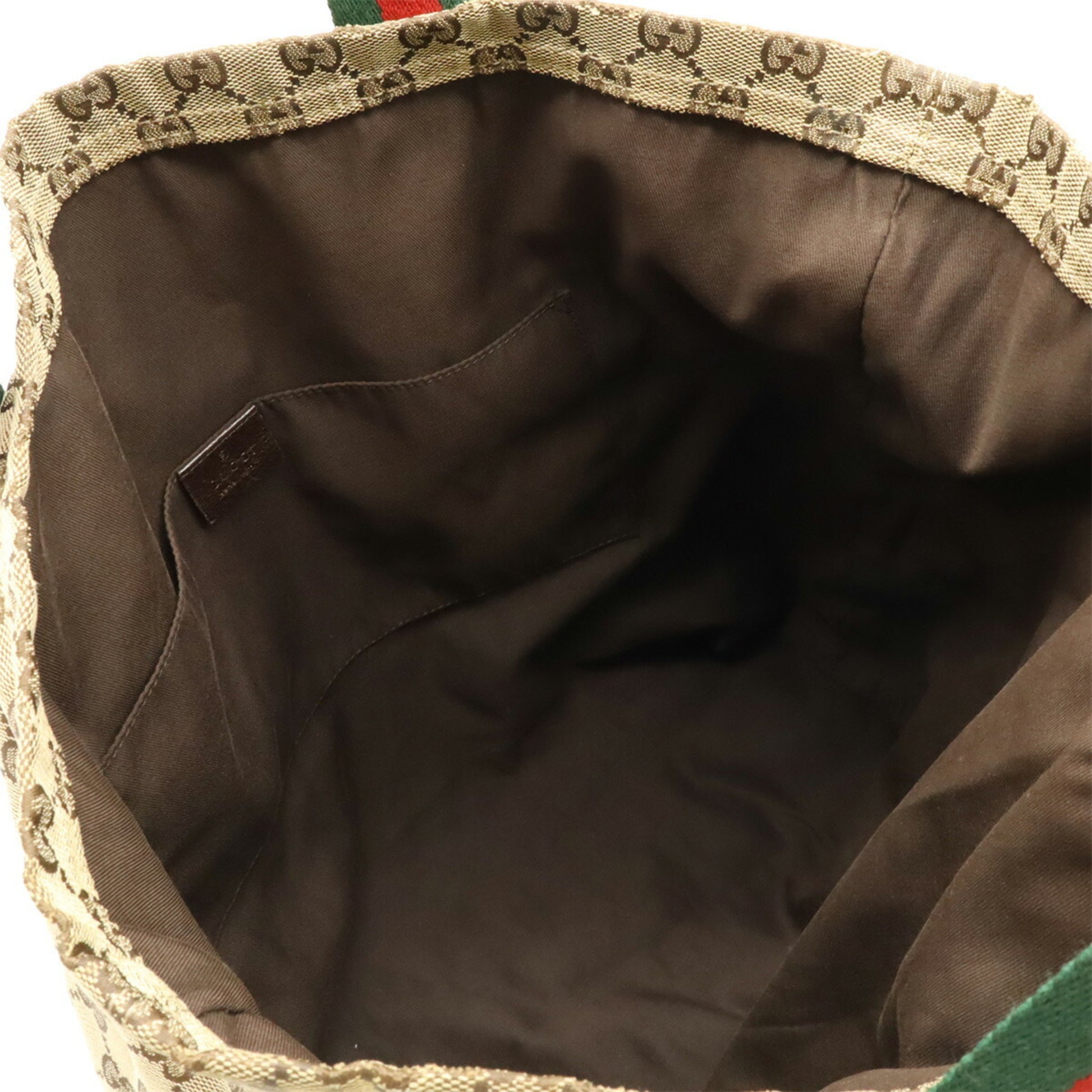 Gucci Gg Canvas Sherry Line Tote Bag Shoulder Leather Khaki Beige Green Red 189669