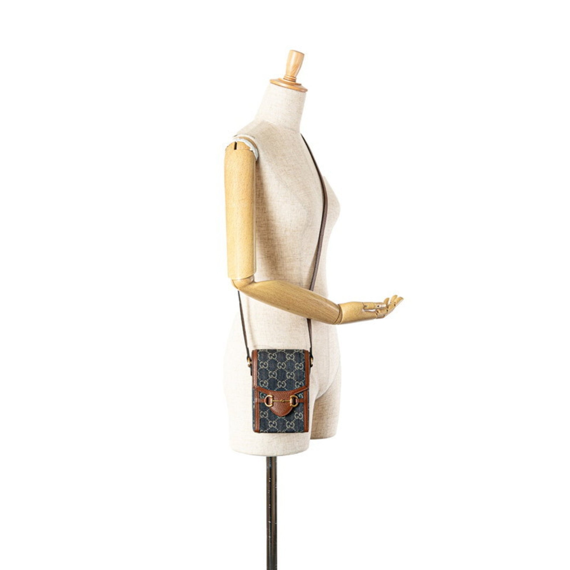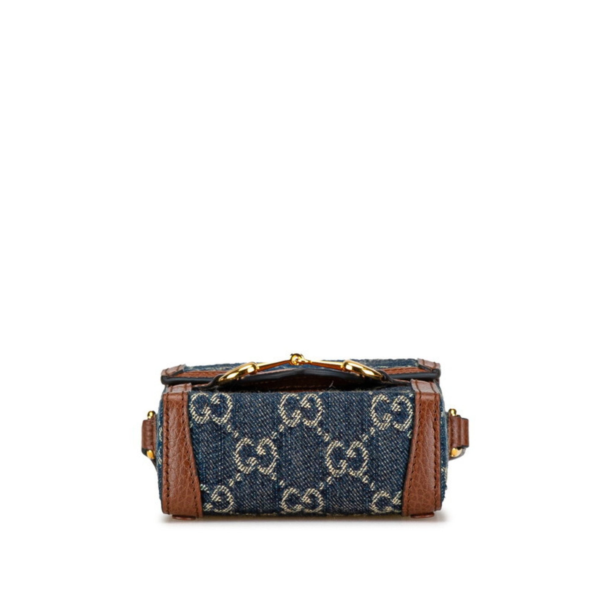 Gucci Gg Denim Horsebit 1955 Shoulder Bag 625615 Indigo Blue Brown Canvas Leather