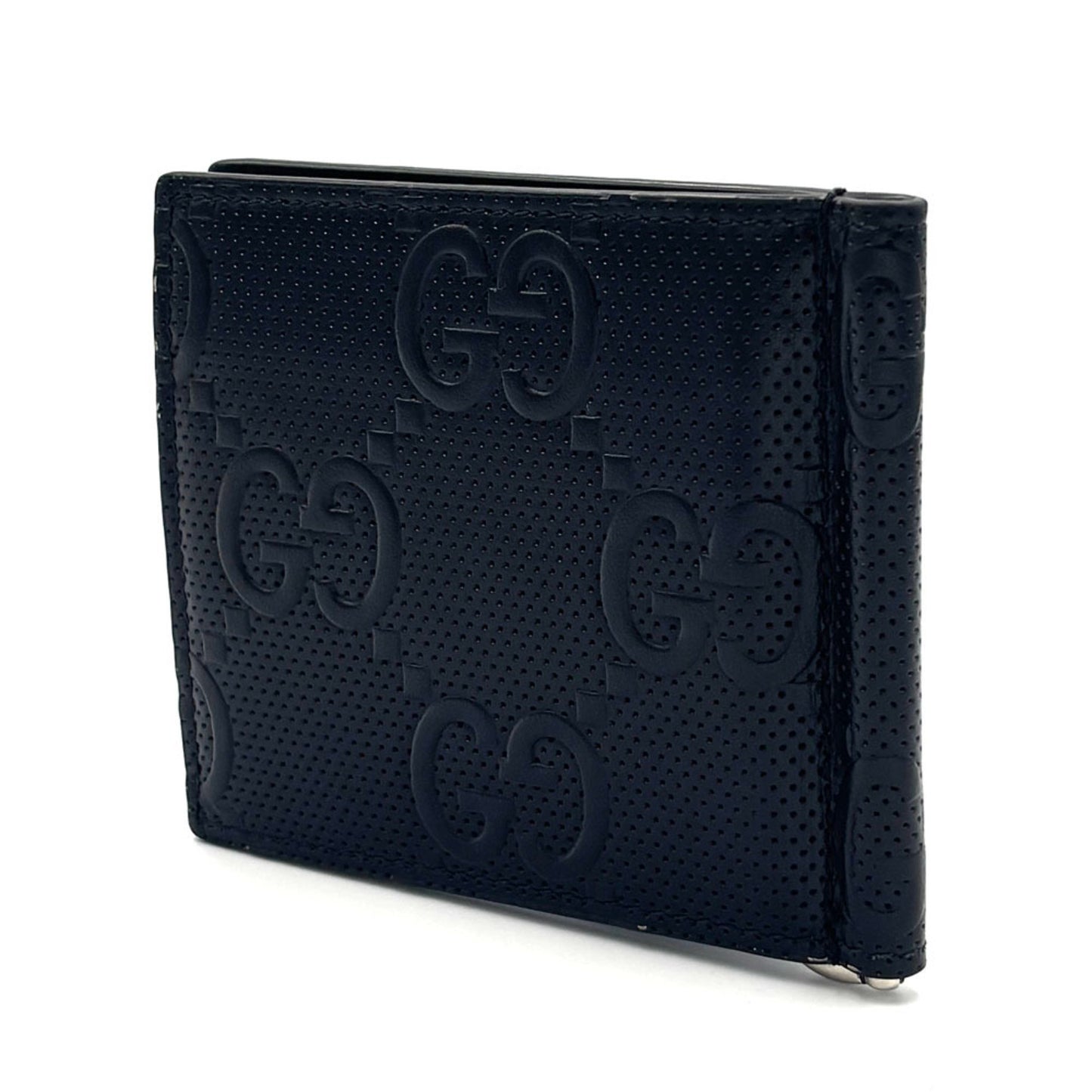 Gucci Gg Embossed Money Clip 676656 Black Leather Bill Wallet Bi-Fold