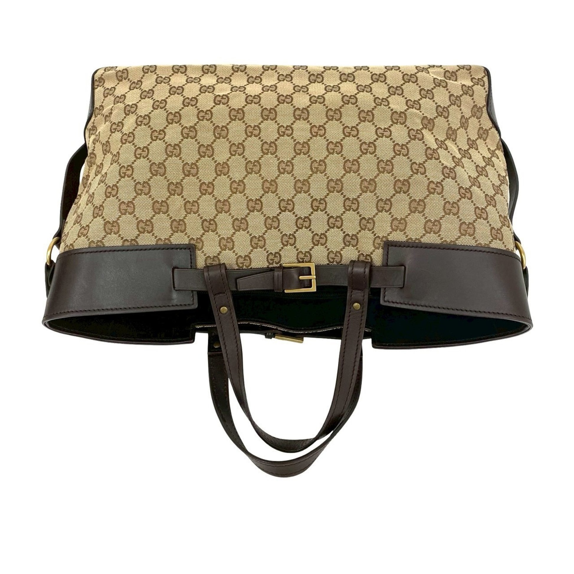 Gucci Gg Logo Belt Clasp Canvas And Leather Tote Bag