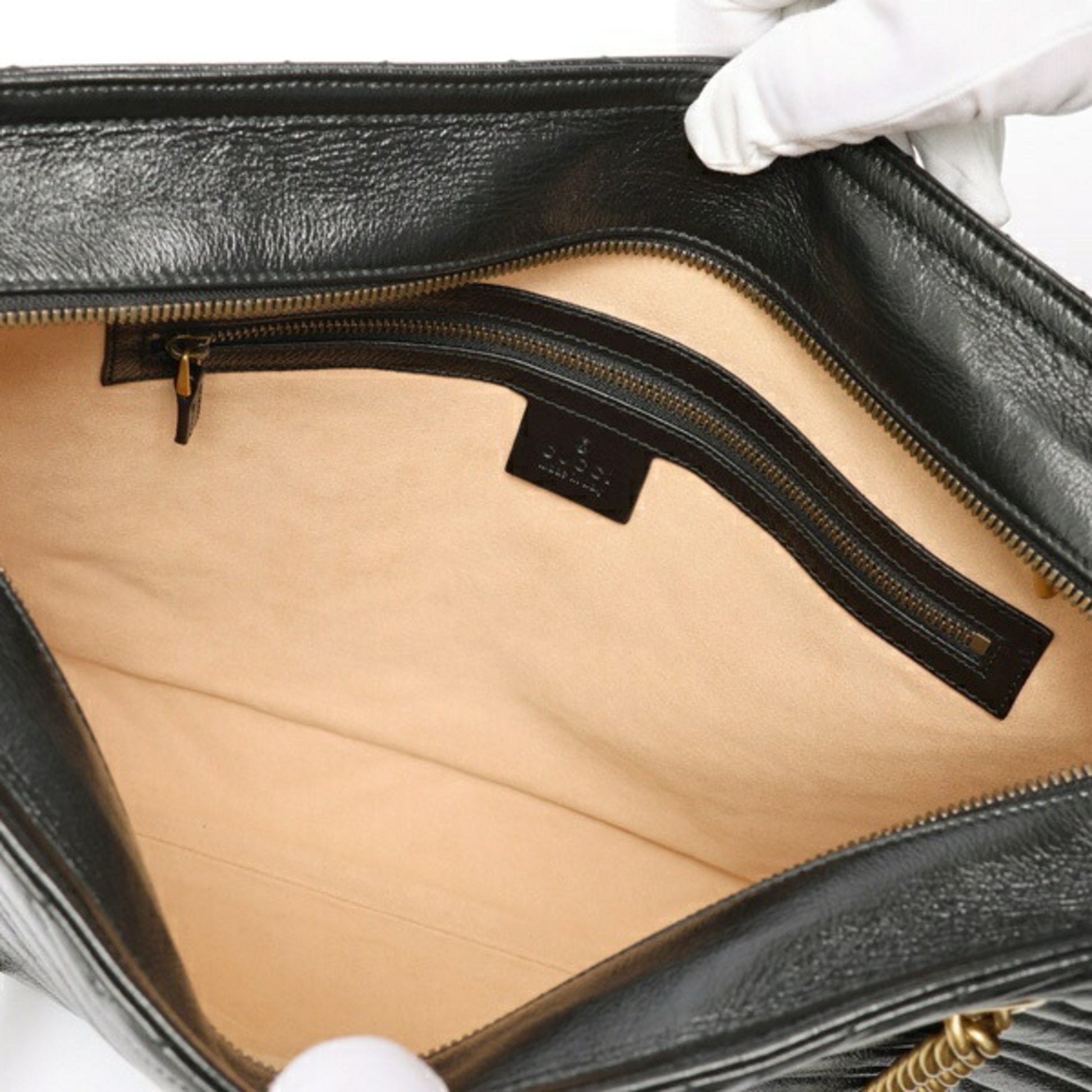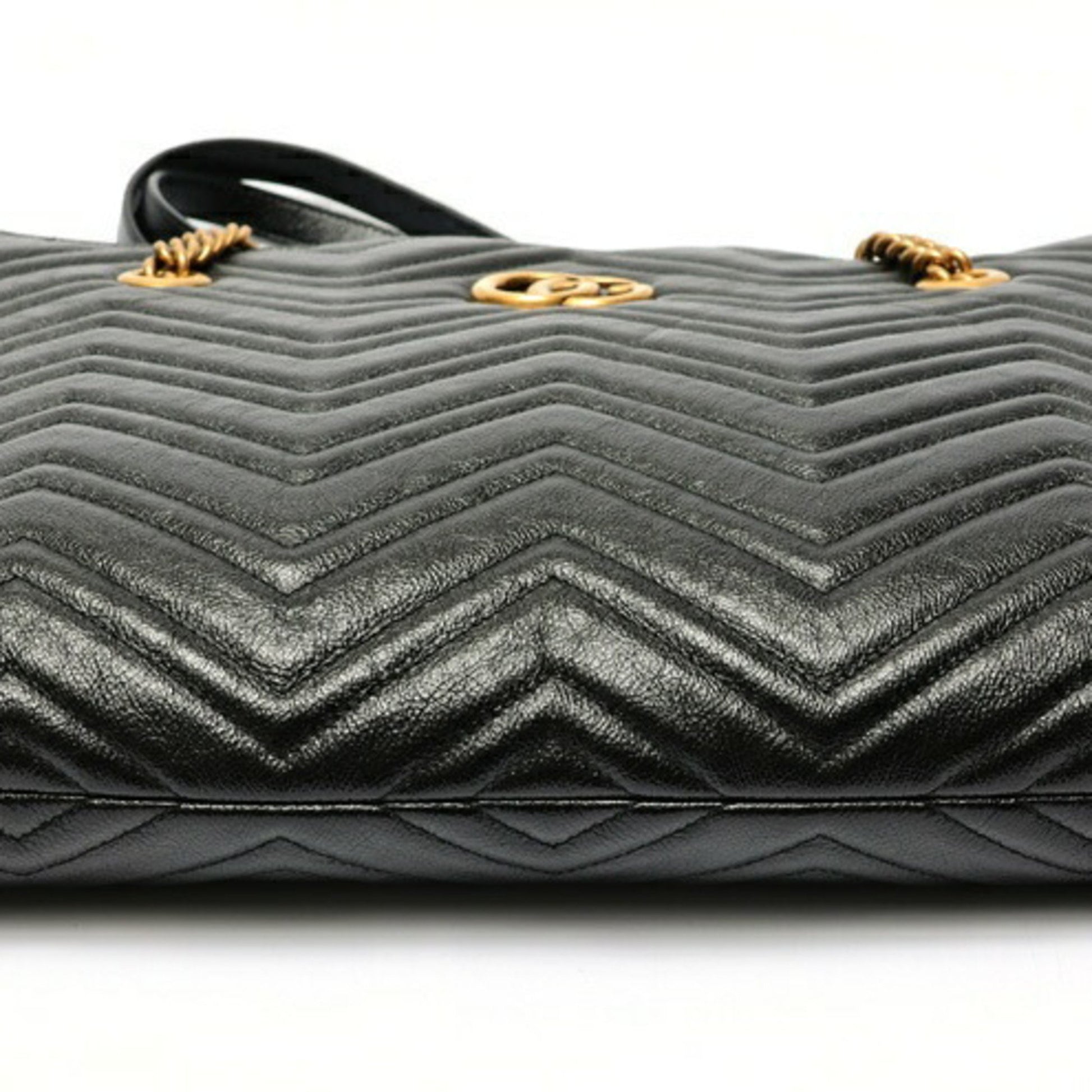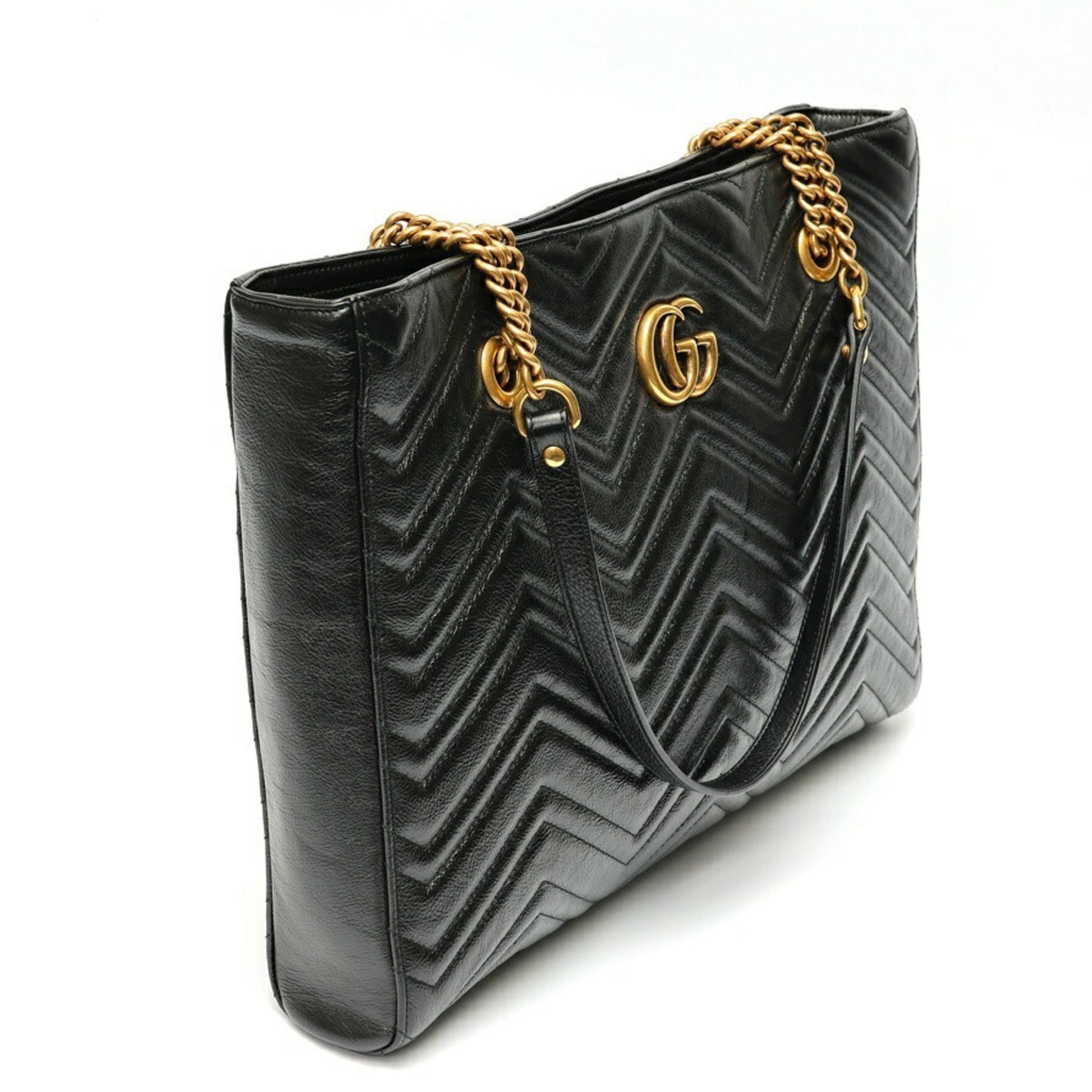Gucci Gg Marmont Chain Tote Bag 524578 Leather Black E-158644