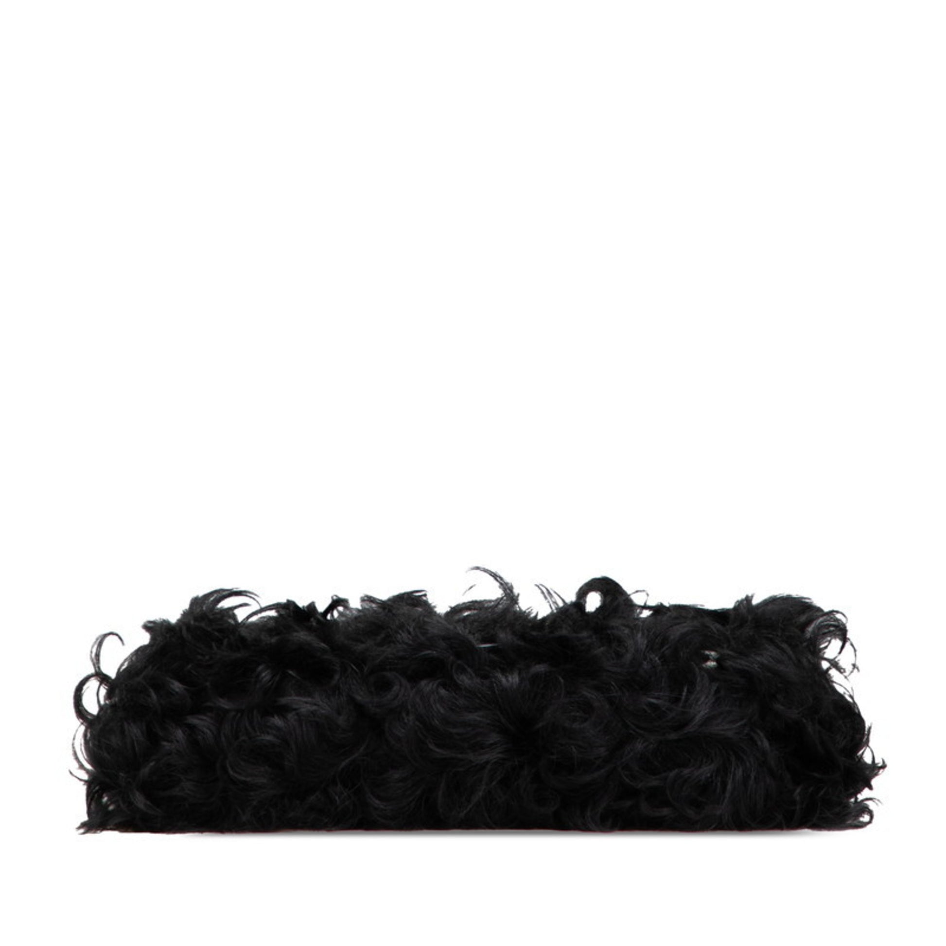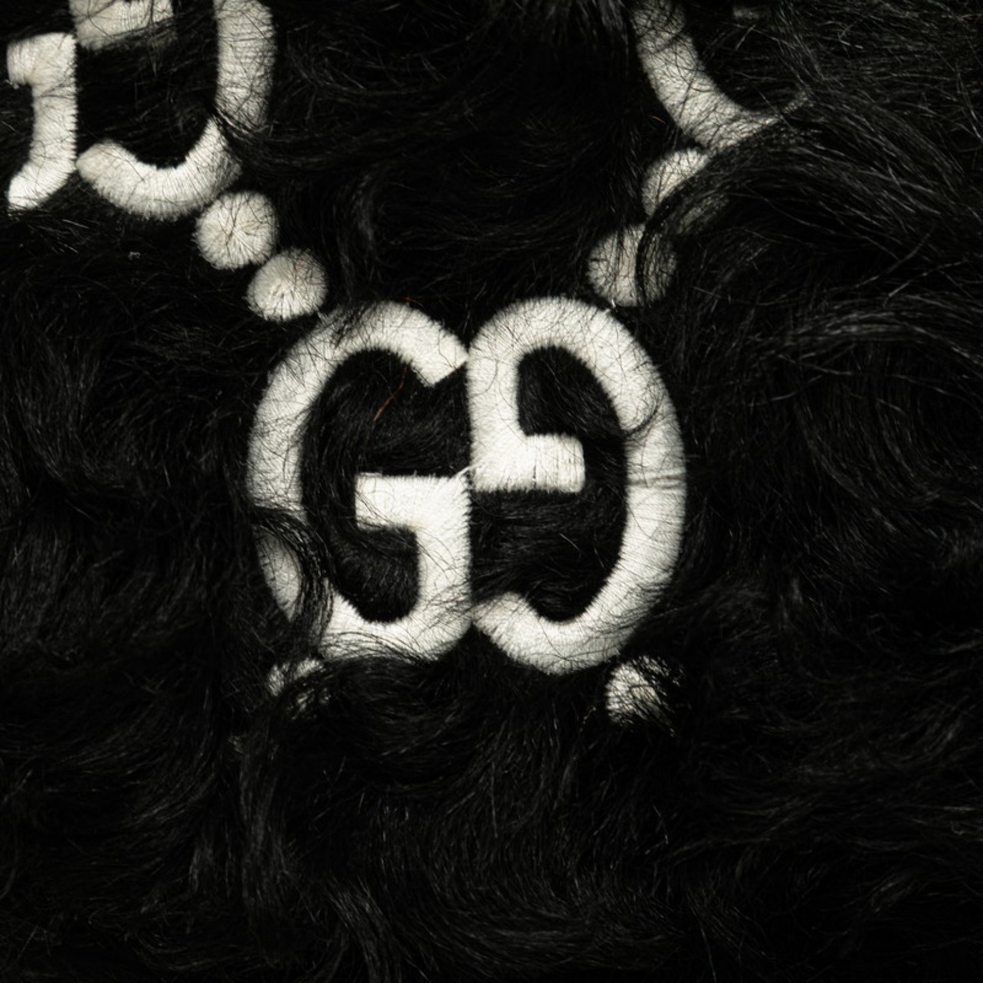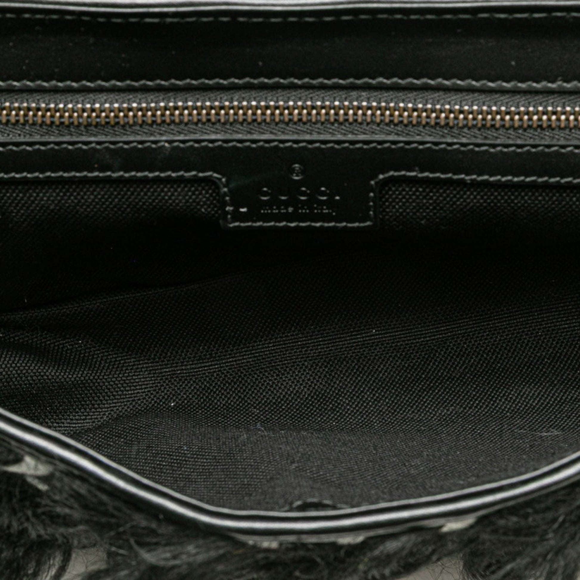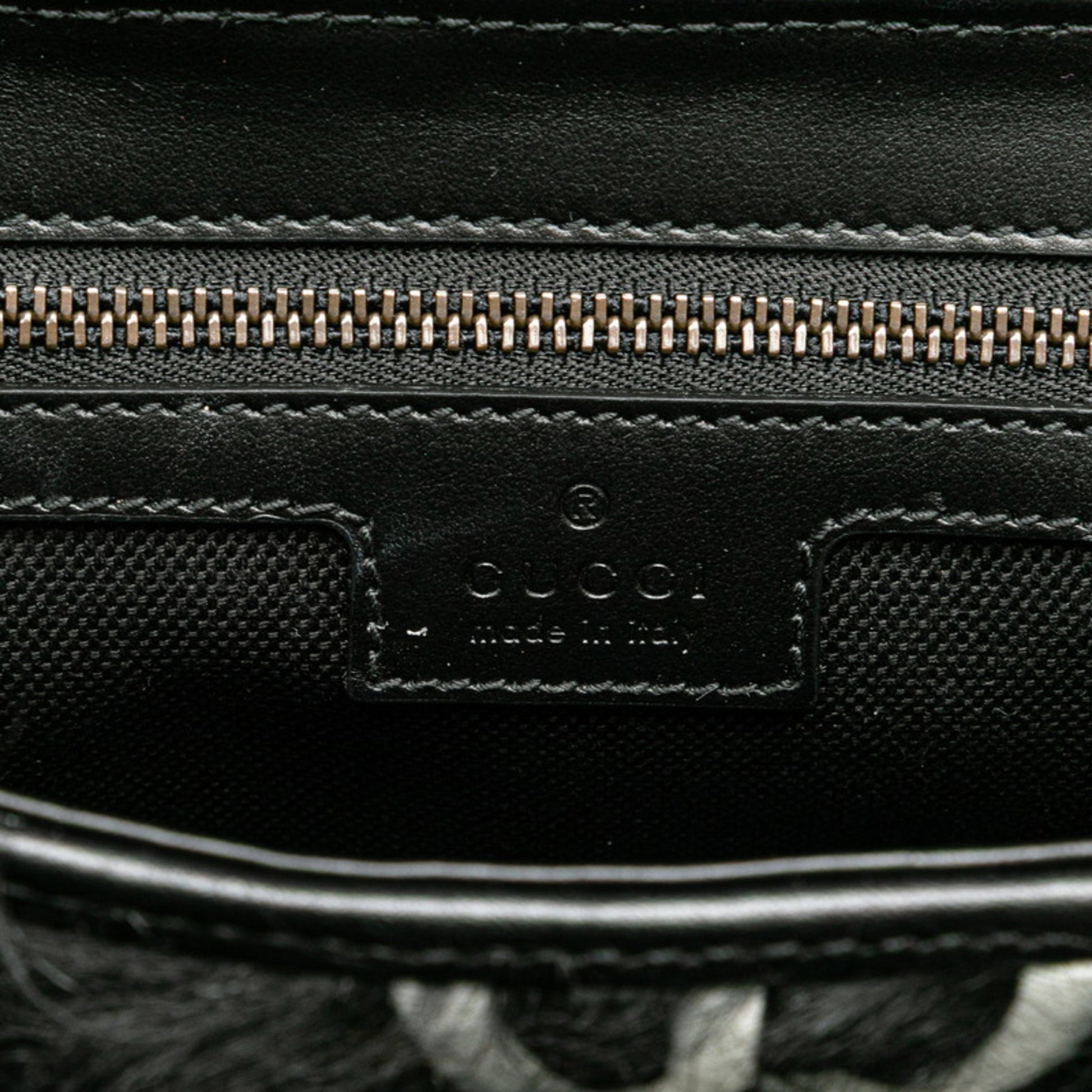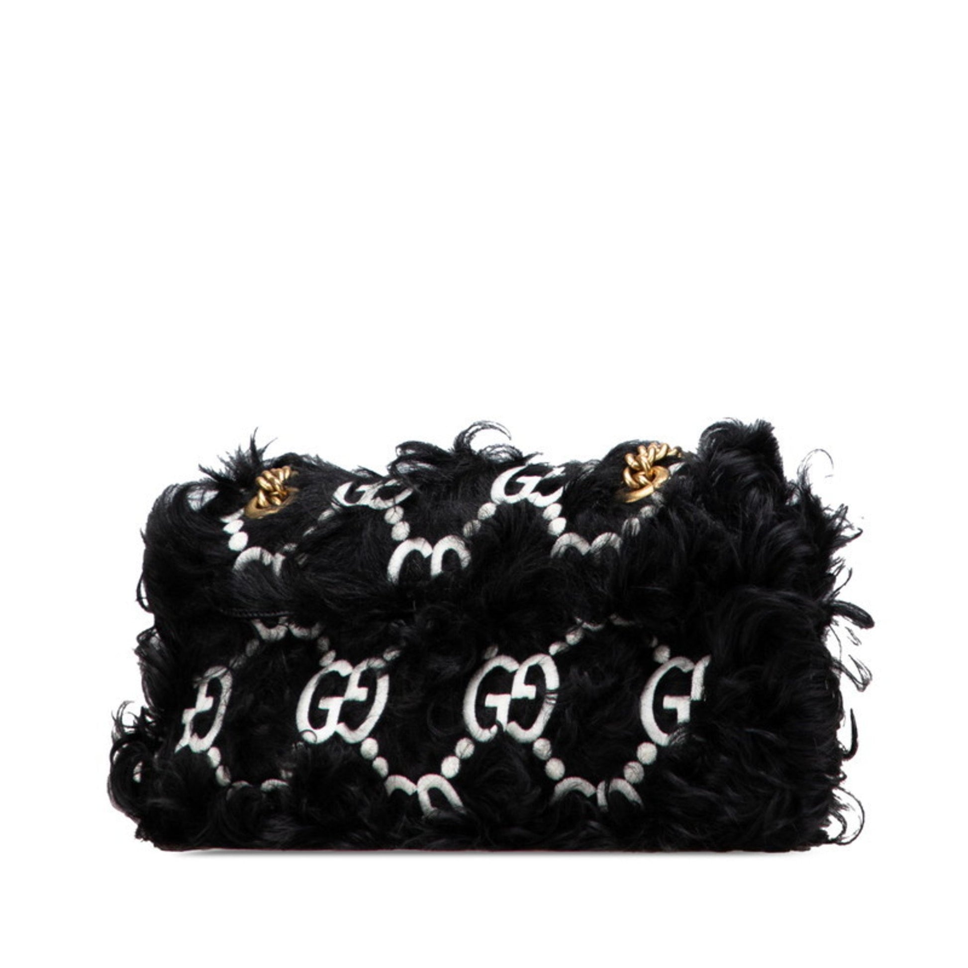 Gucci Gg Marmont Pattern Chain Shoulder Bag/Handbag 752026 Black/White Faux Fur/Leather