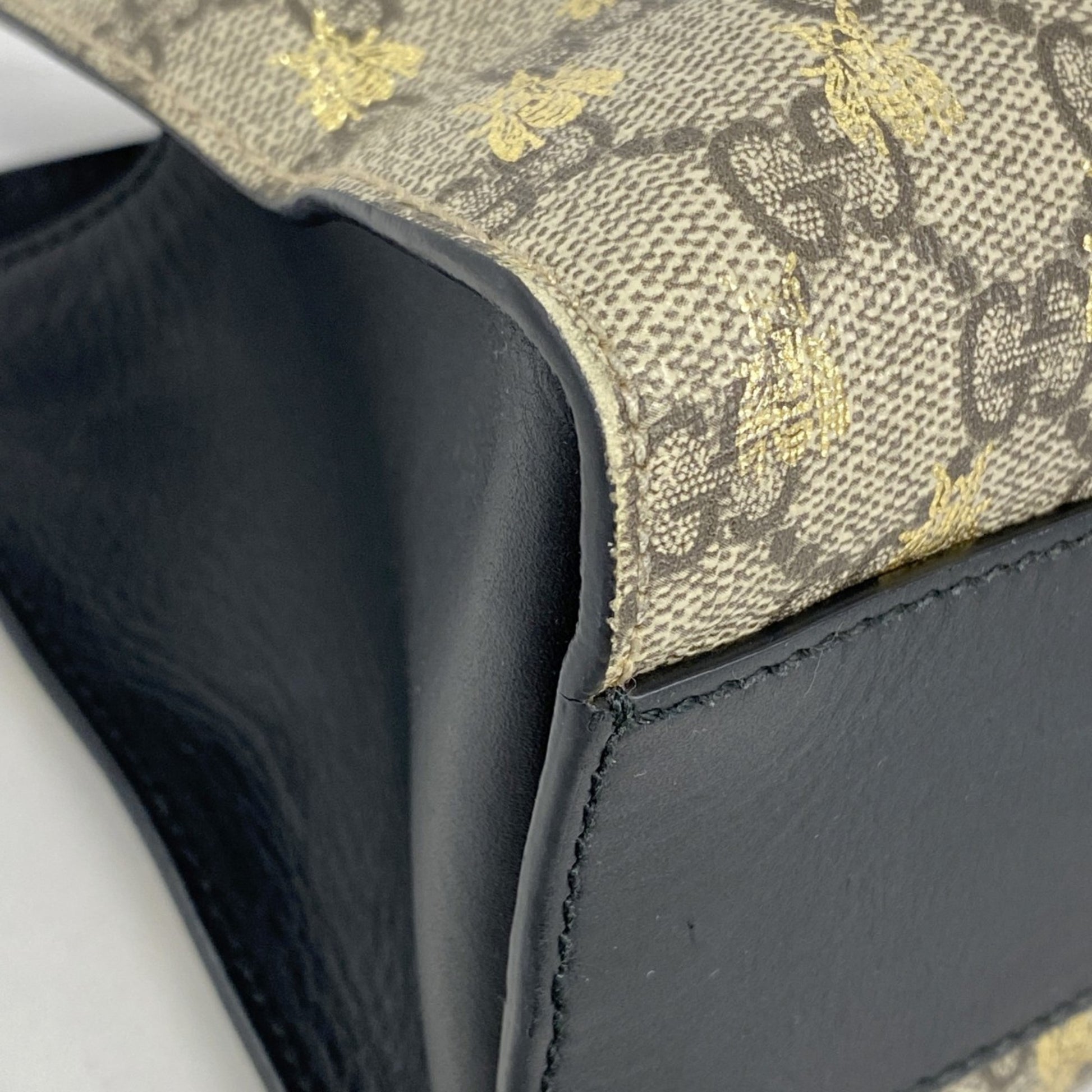 Gucci Gg Supreme Bee Shoulder Bag 498156 Leather Brown Black