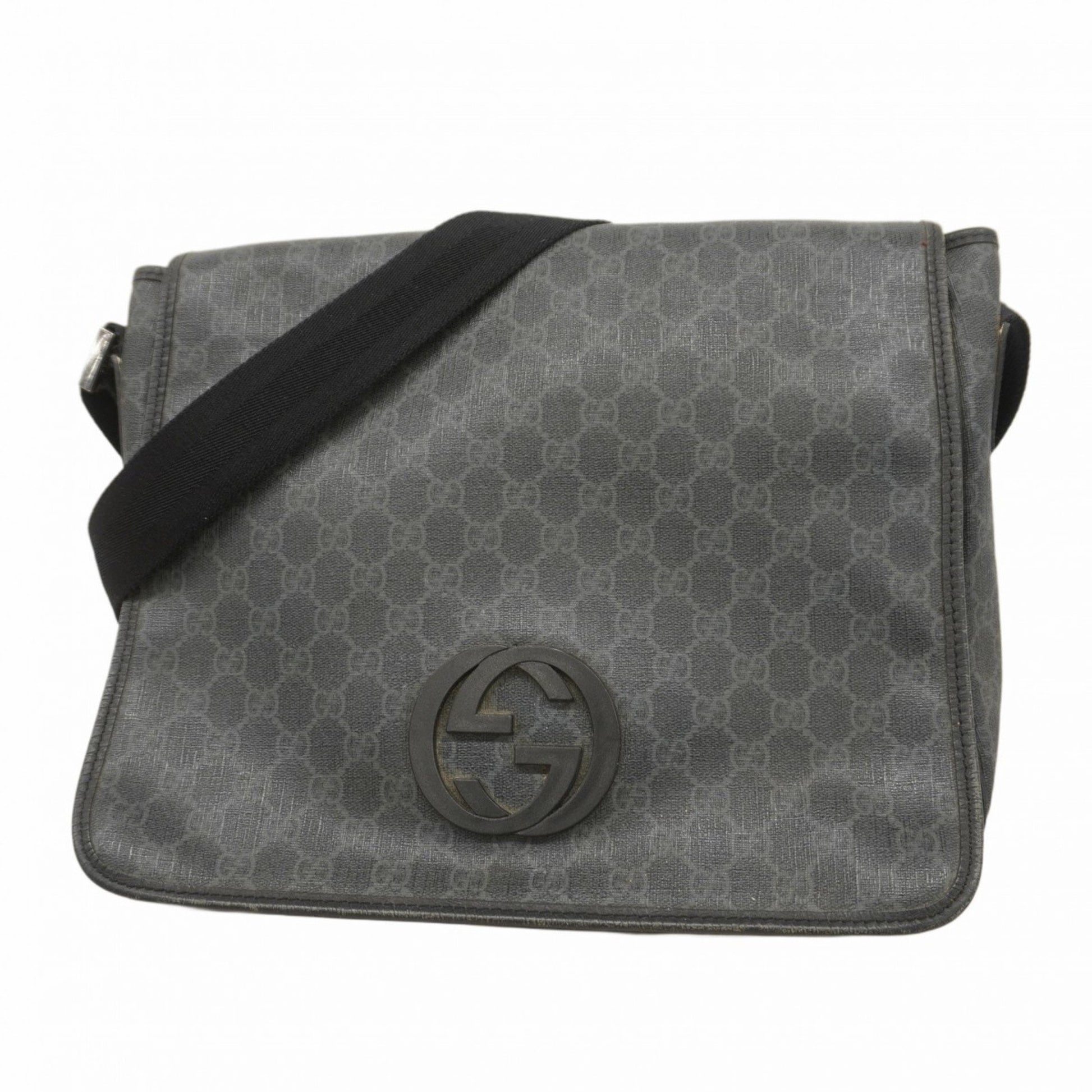 Gucci Gg Supreme Interlocking G Shoulder Bag 222291 Gray Black