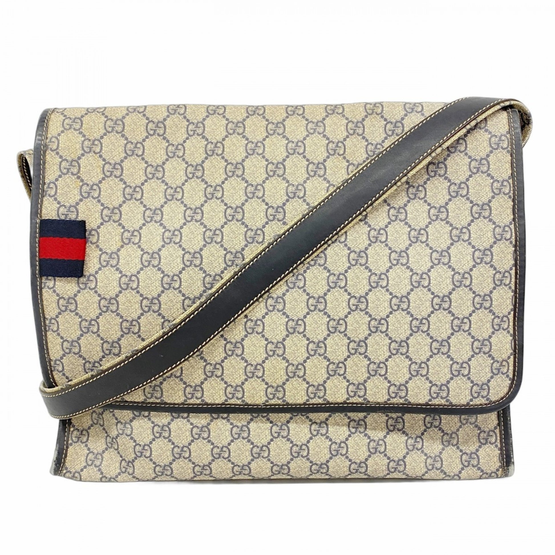 Gucci Gg Supreme Sherry Line Shoulder Bag 246411 Navy Beige