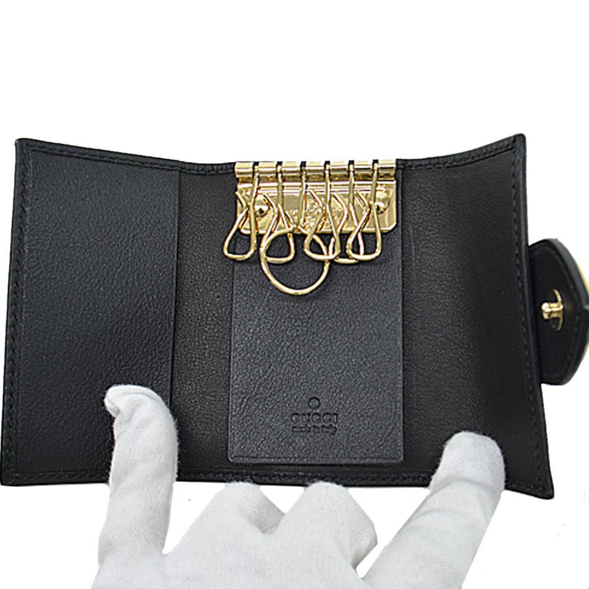 Gucci Gucci 6 Consecutive Key Case Gg Black X Gold Canvas Leather Metal Material Holder