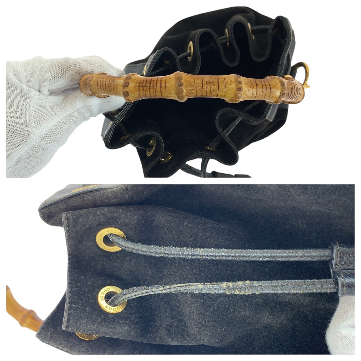 Gucci Handbag 001 2040 1657 Suede, Leather Black Bamboo Women