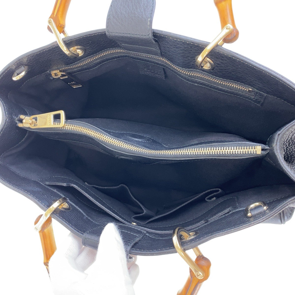 Gucci Handbag 323660 Leather Black Gold Bamboo Shopper