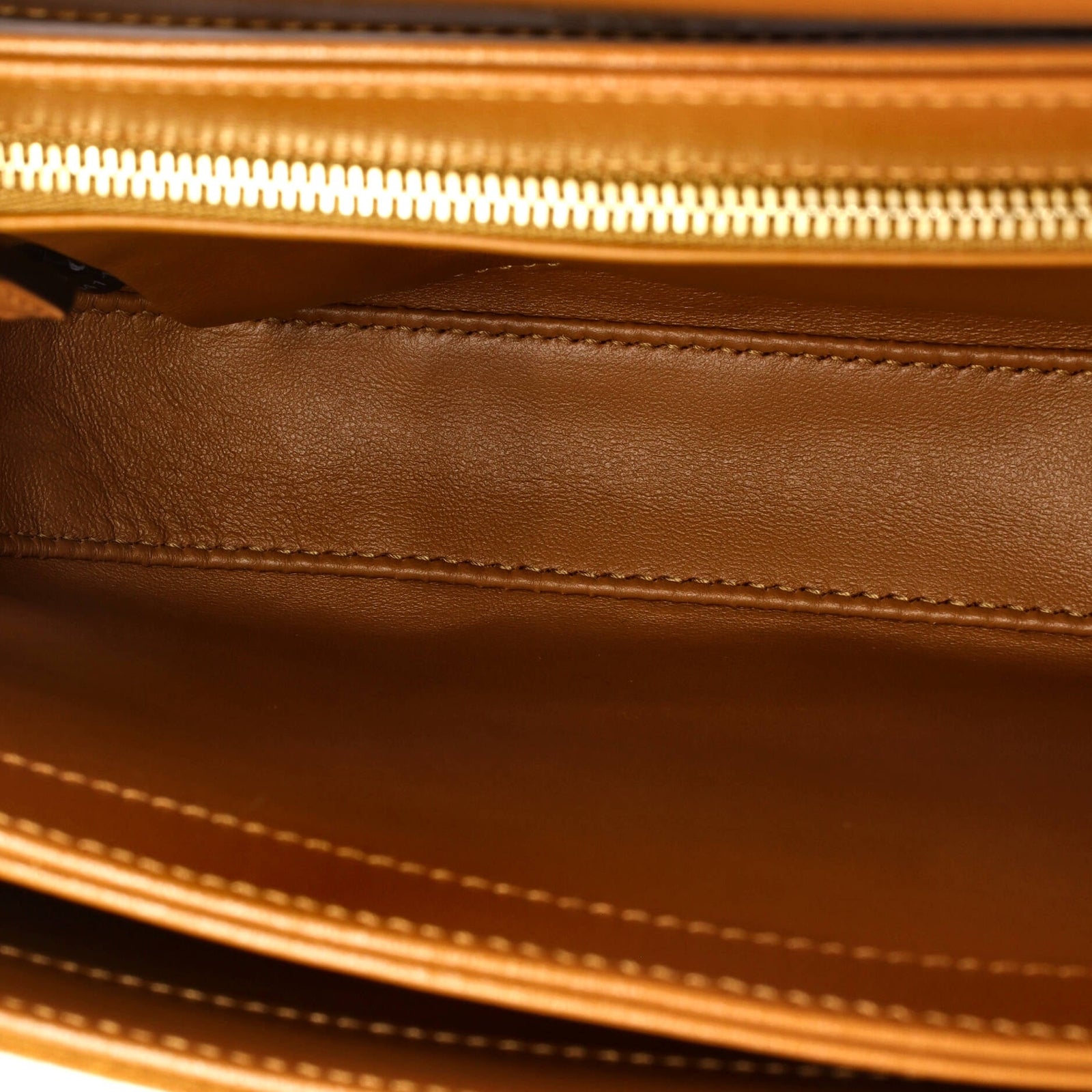 Condition: Very good. Creasing, scuffs, minor wear and marks on exterior and strap, minor balding on base edges. Minor scuffs and wear underneath flap and in interior, scrtaches on hardware.