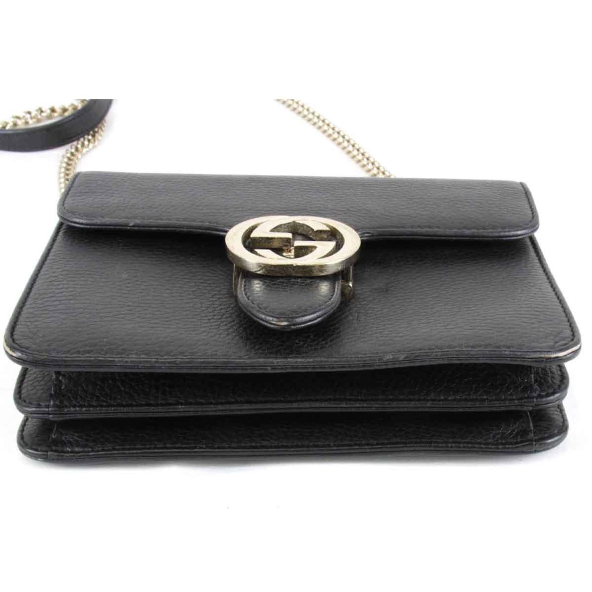 Gucci Interlocking G Chain 510304 493075 Shoulder Bag Leather Black