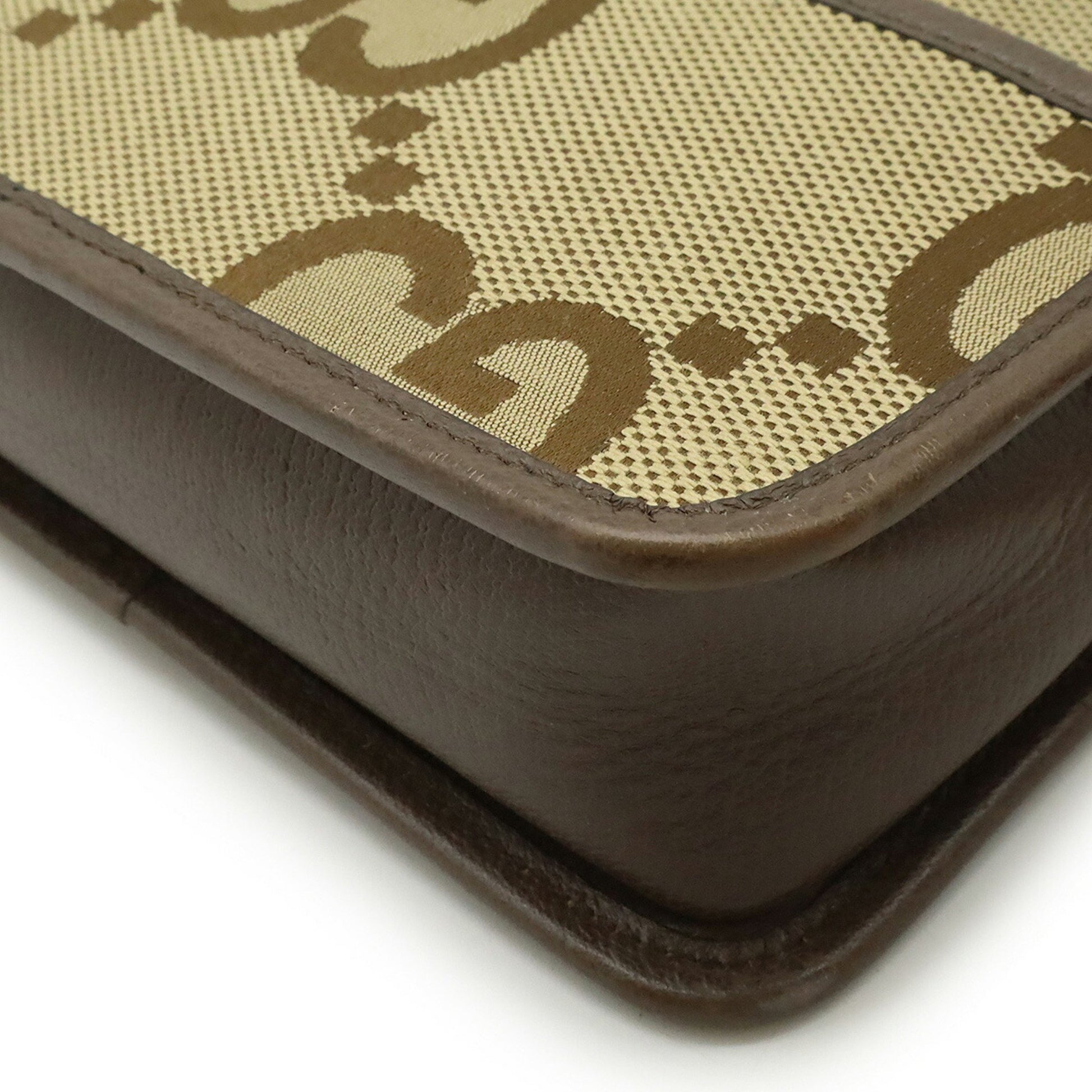 Gucci Jumbo Gg Shoulder Bag Pochette Clutch Canvas Beige Dark Brown 696075