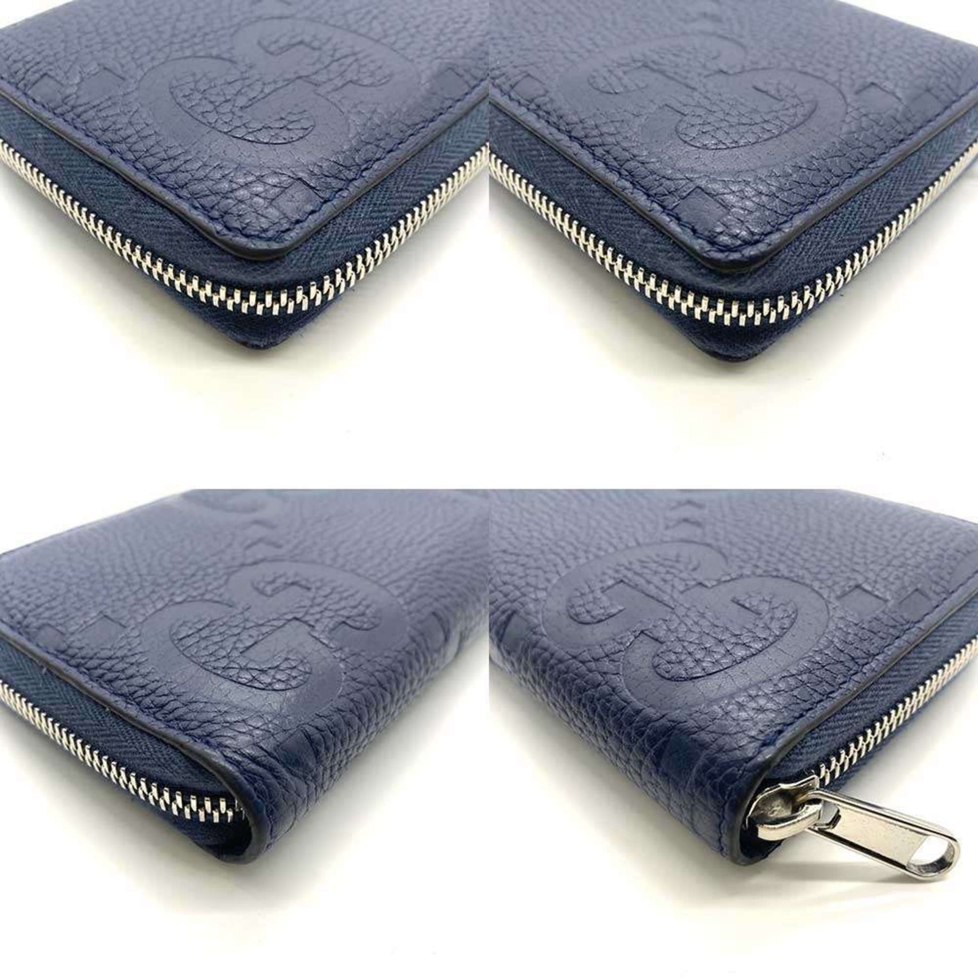 Gucci Long Wallet Jumbo Gg Round Leather Navy 825958 Gucci