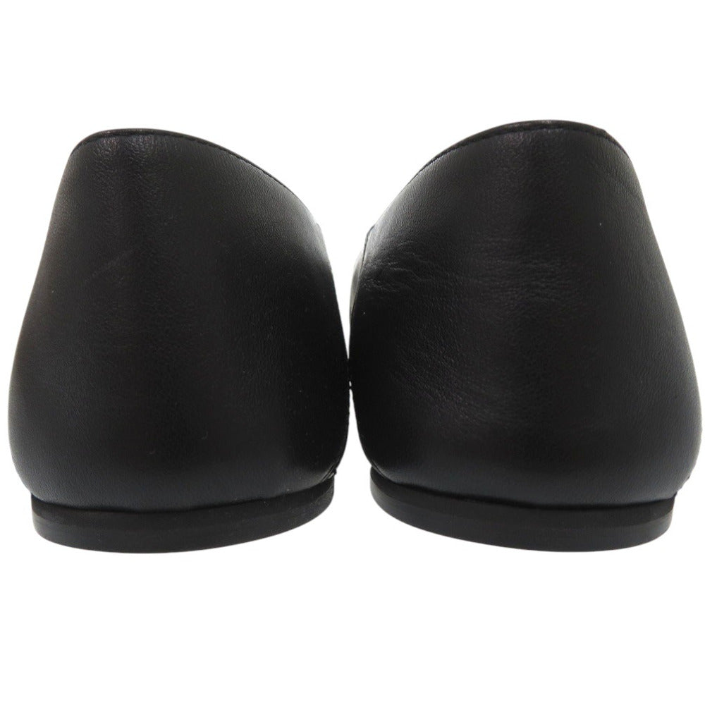 Gucci Pumps 621161 Leather Black Chain Pointed Toe Flats Horsebit Women 34 1/2