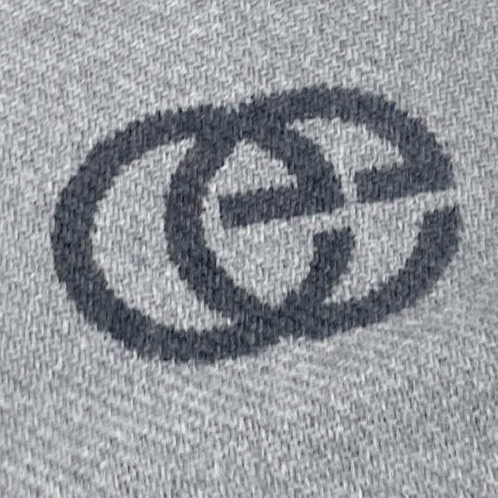 Gucci Scarf Wool Gray Fringe Logo Gg Stripes Women