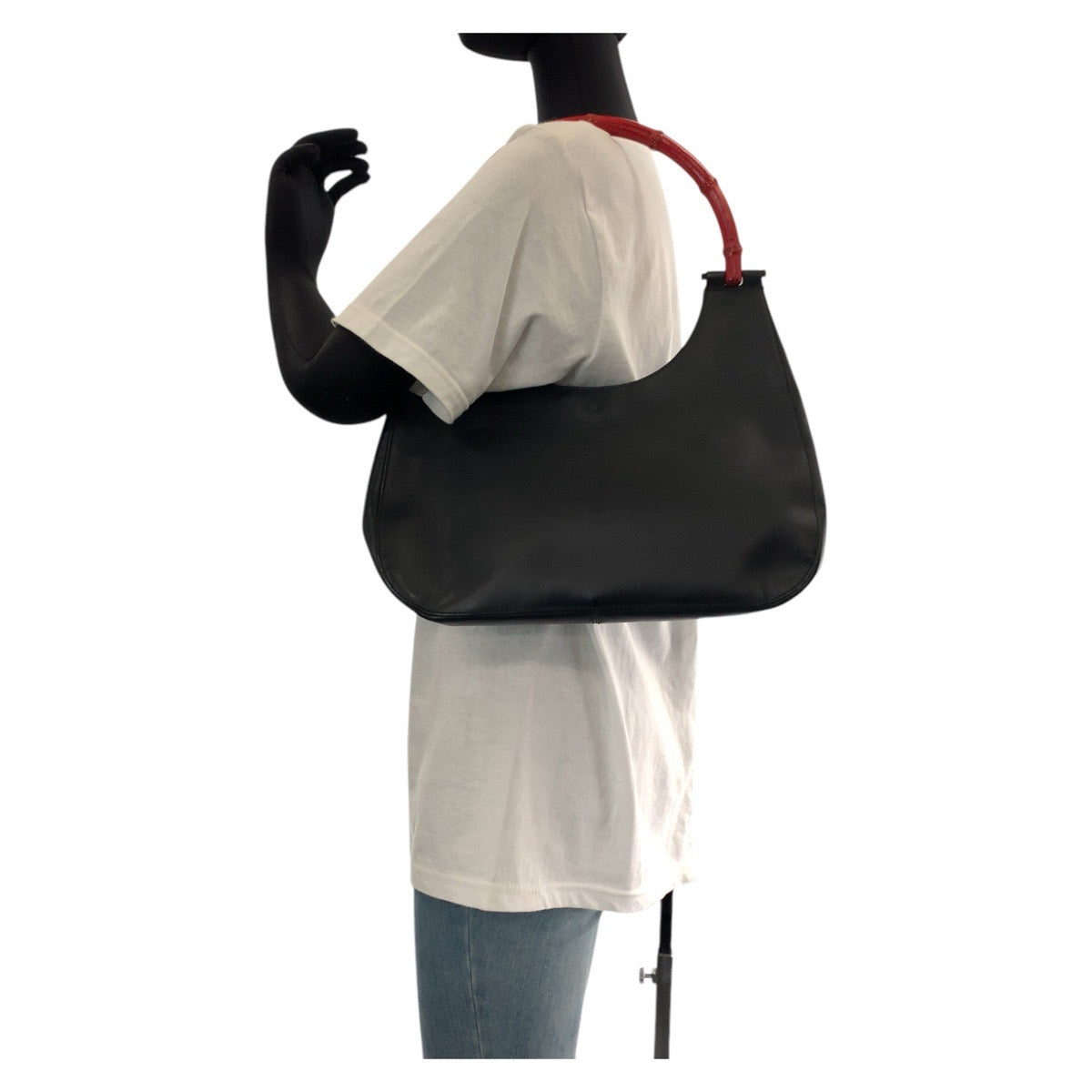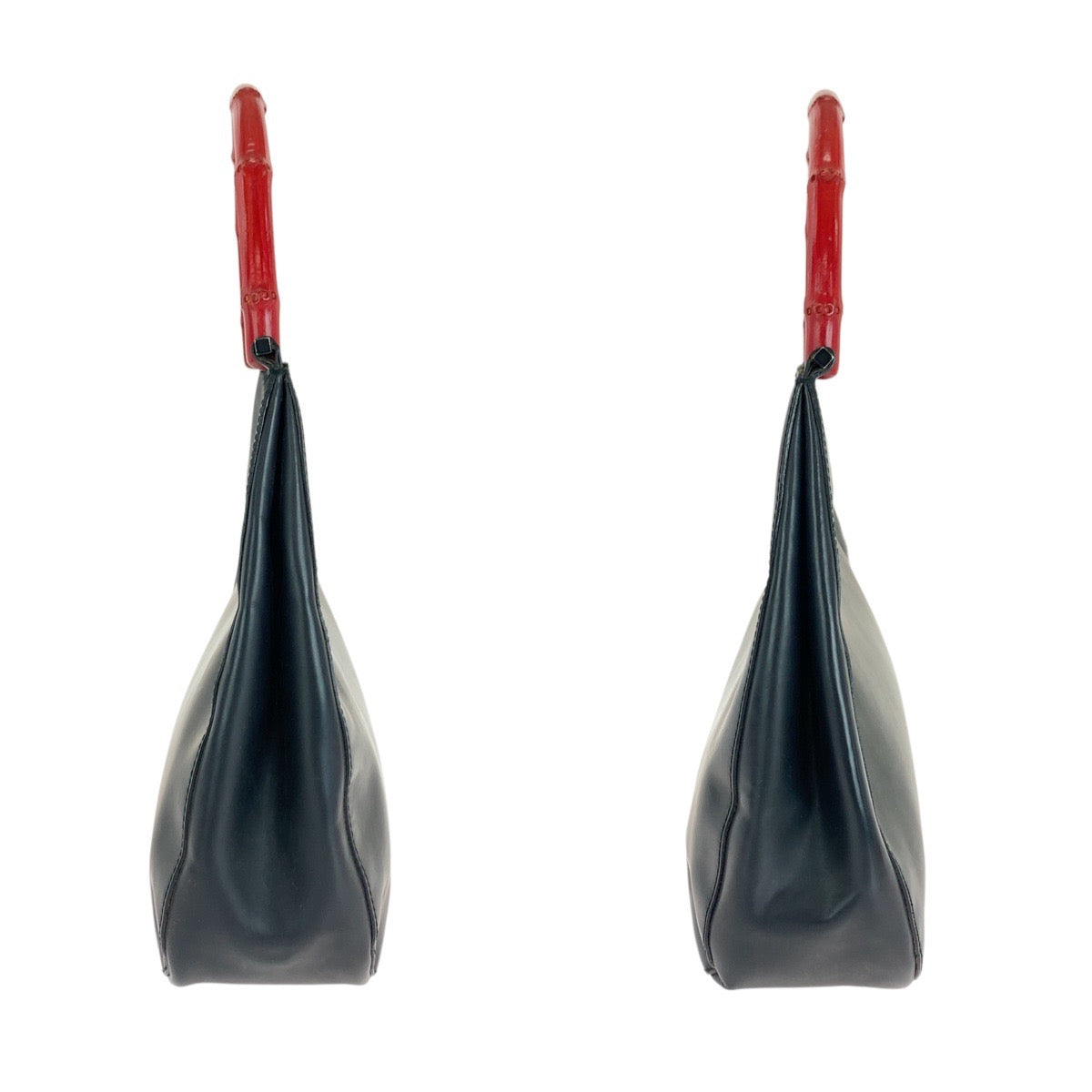 Gucci Shoulder Bag 001 3739 Leather Black Bamboo Women