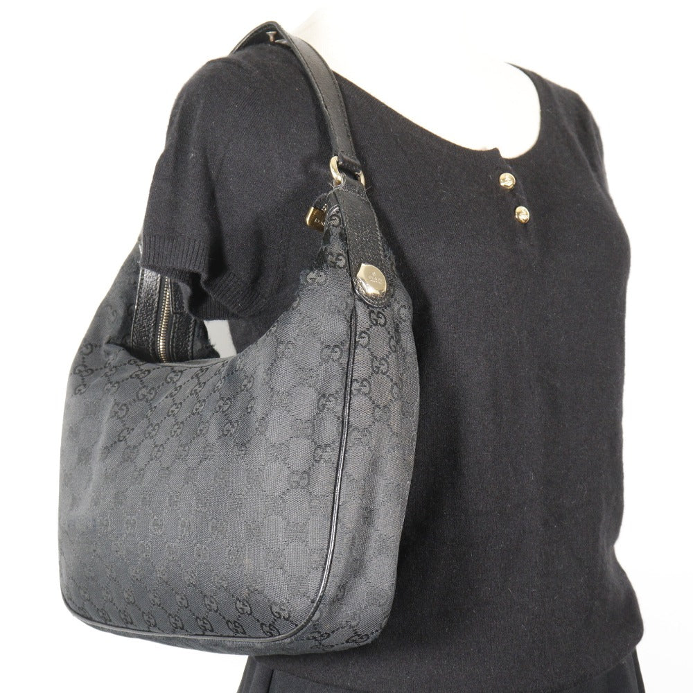 Gucci Shoulder Bag 153010 Gg Canvas Black One Belt Women