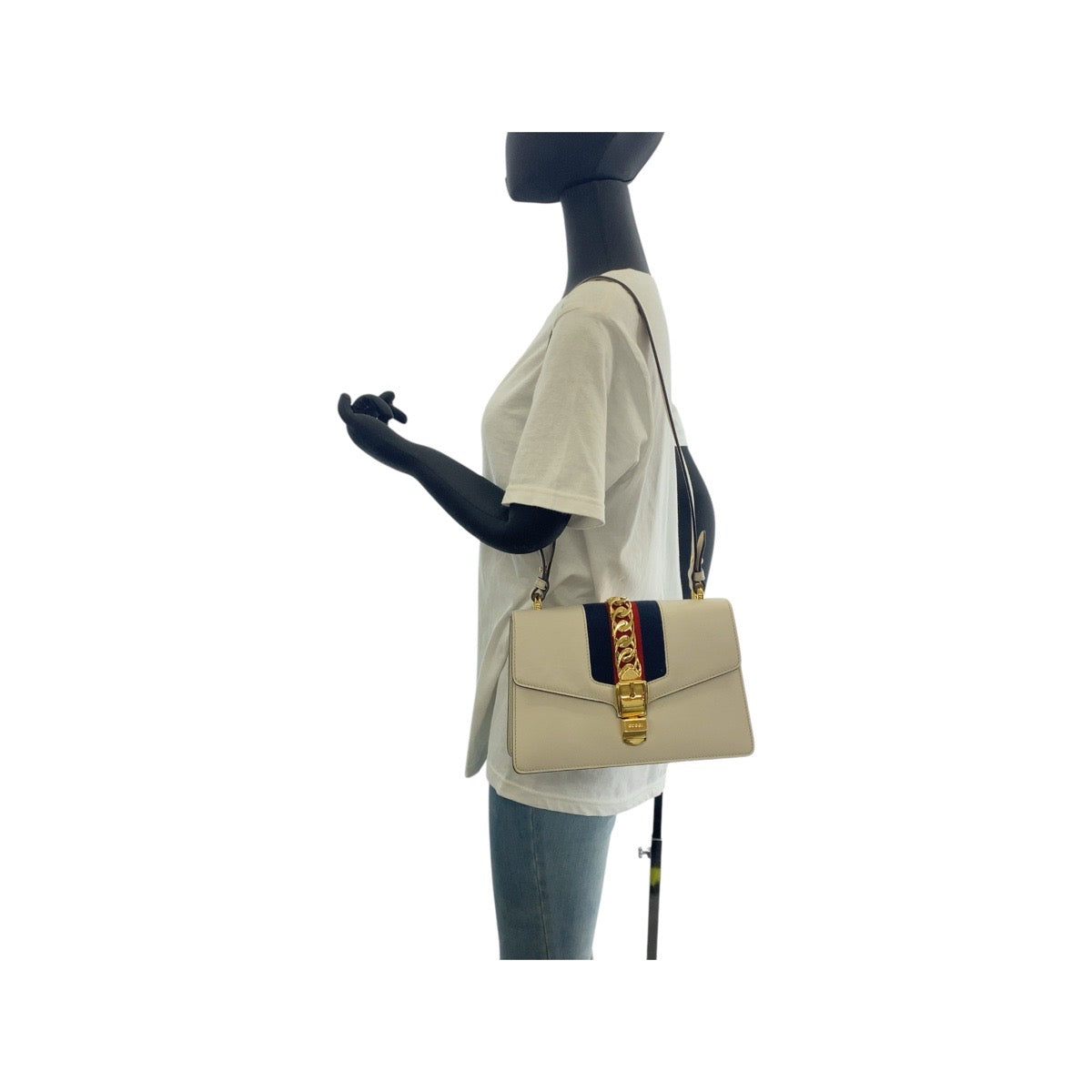 Gucci Shoulder Bag 421882 Leather Ivory White Gold Metal Shoulder Bag Sherry Line Silvi Women