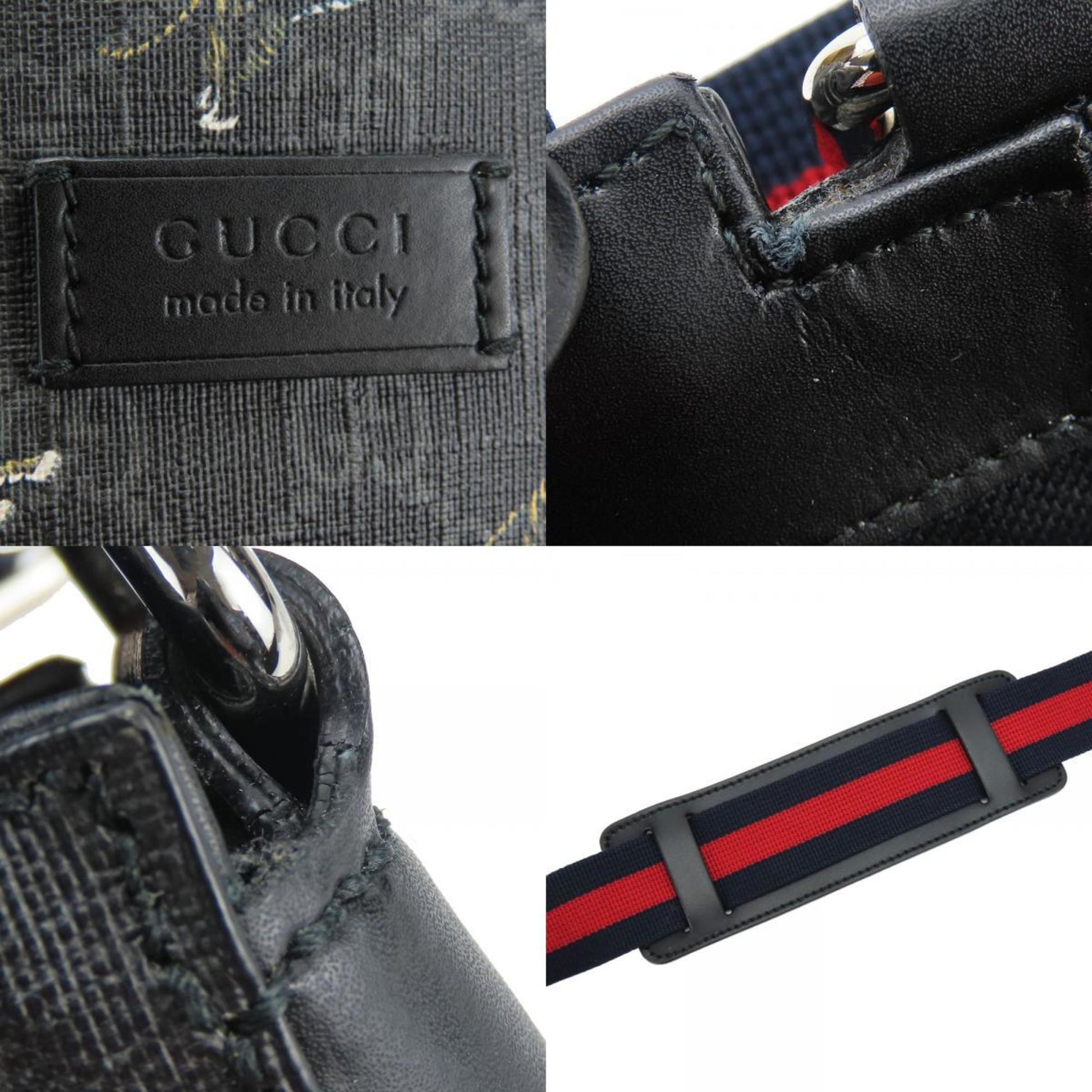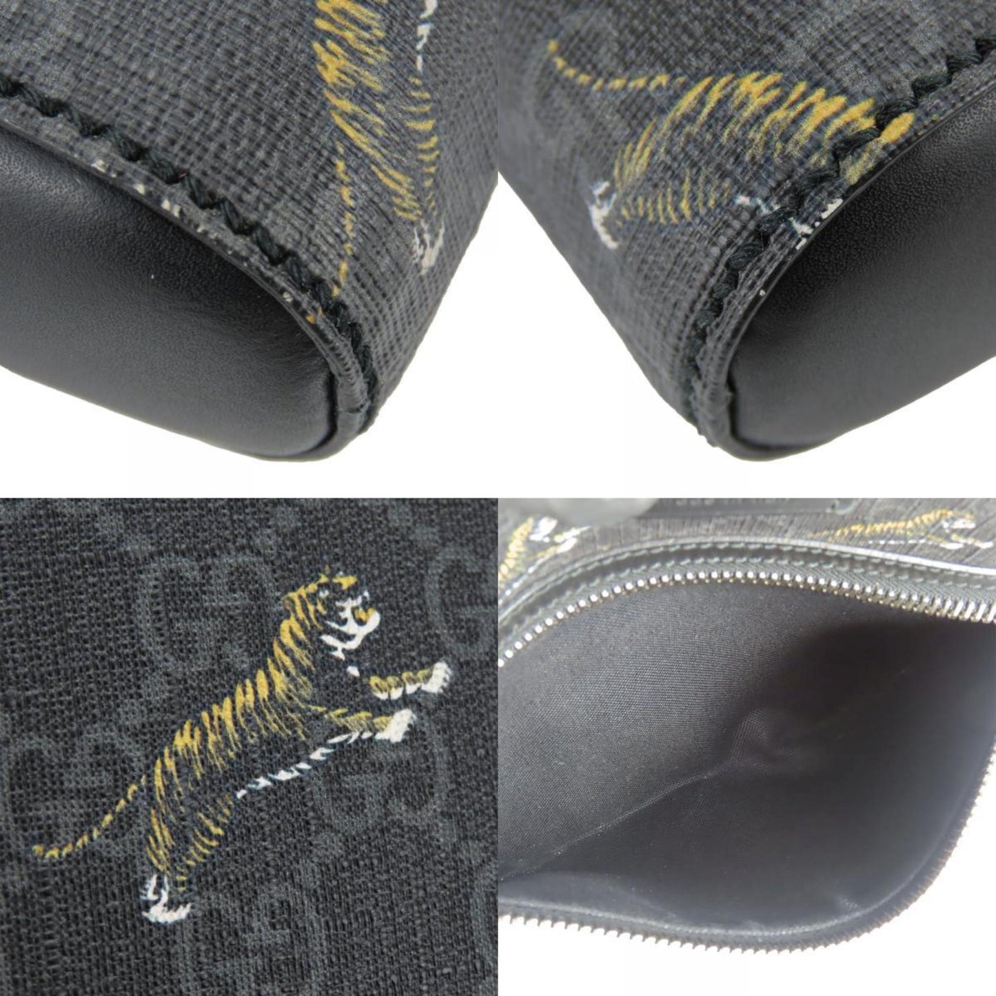 Gucci Shoulder Bag 474137 Gg Supreme Canvas Black Grey Tiger