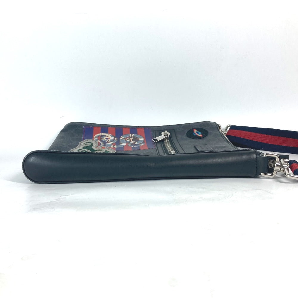 Gucci Shoulder Bag 474137 Gg Supreme Canvas Black X Multicolor Gg Tiger Patch Courier Mens