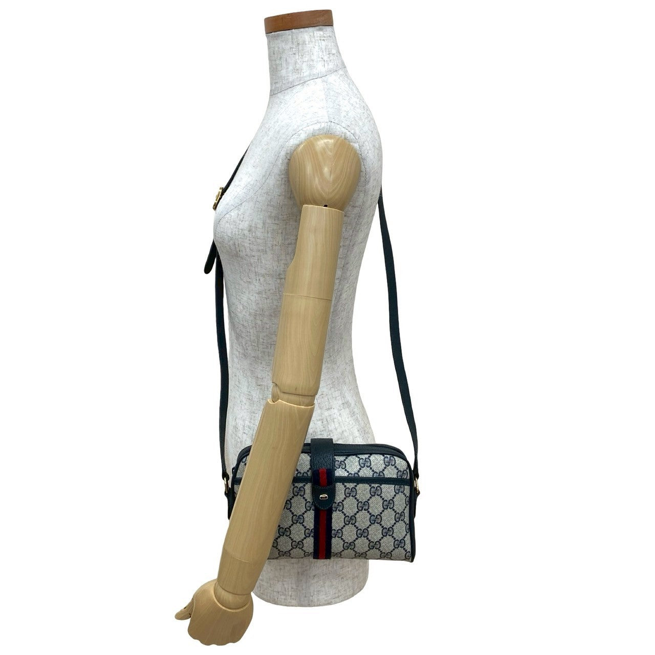 Gucci Shoulder Bag Leather Navy Sherry Line