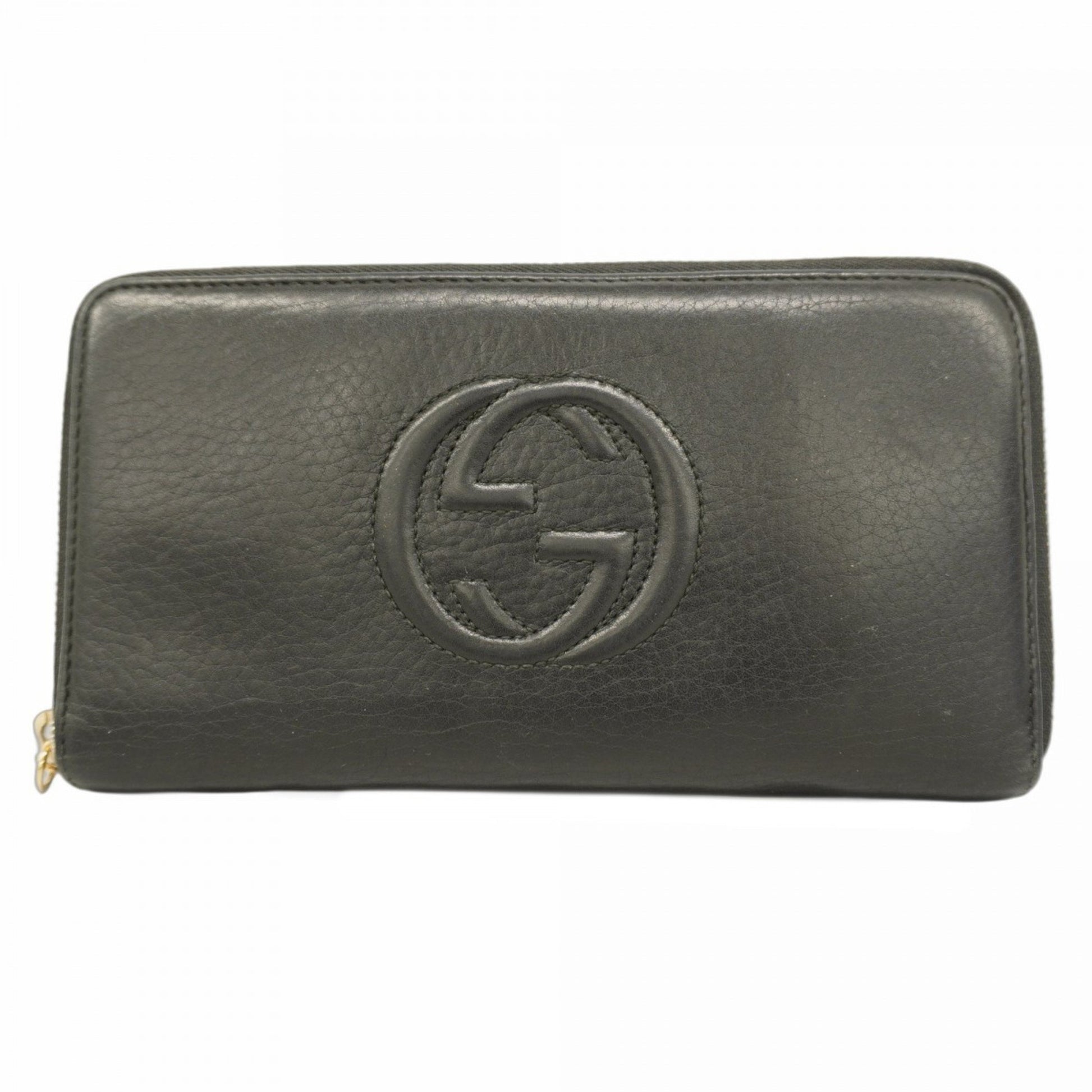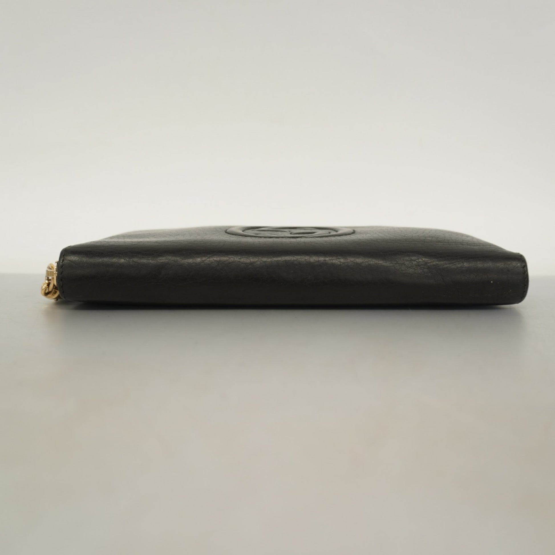 Gucci Soho Long Wallet 291102 Leather Black Champagne