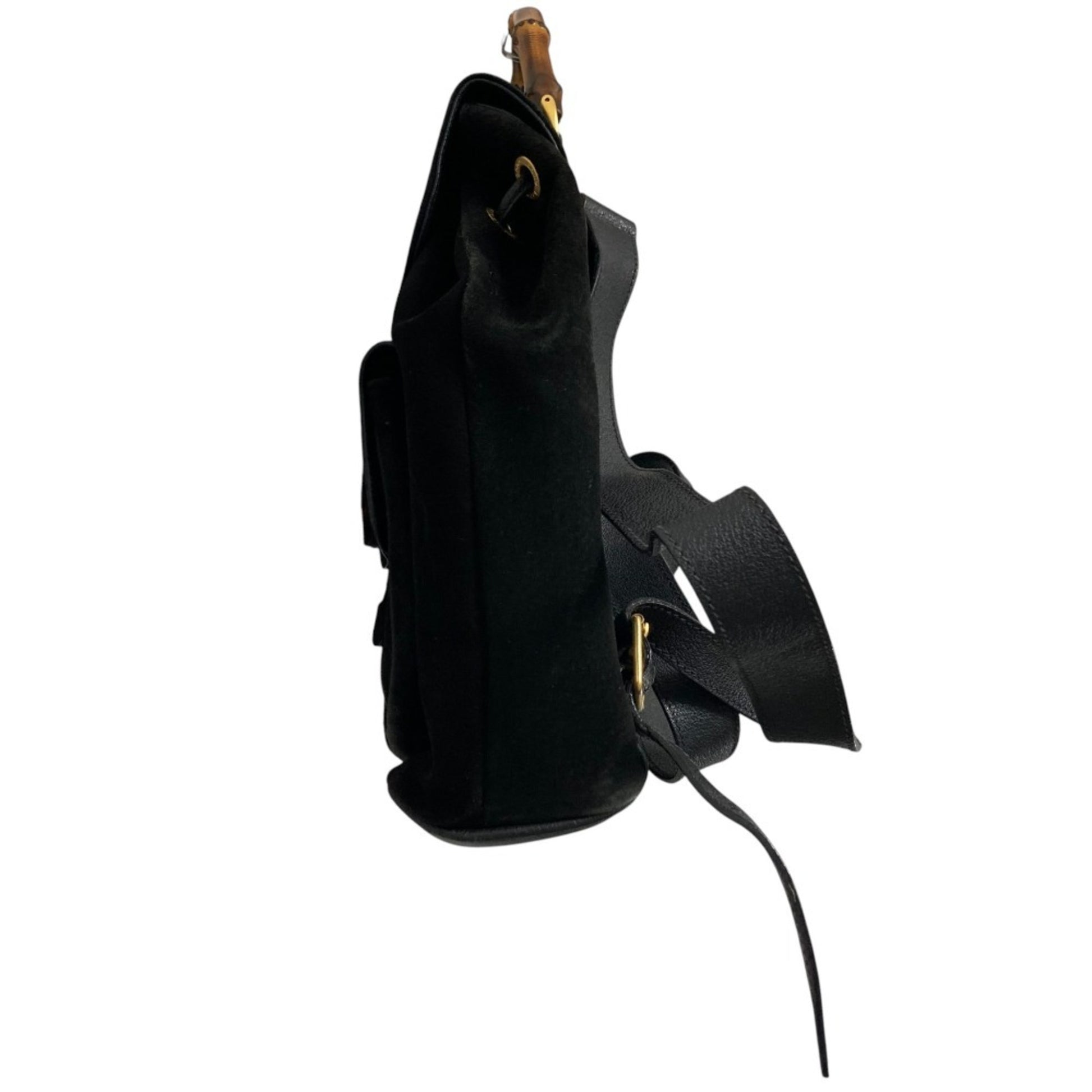 Gucci Suede Leather Bamboo Backpack 2058 Black