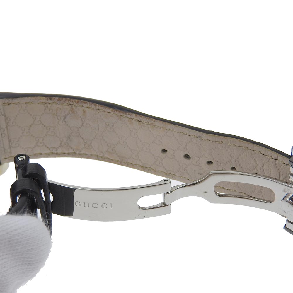 Gucci Watches Quartz 101.2 Stainless Steel , Embossed Leather Black G Chrono Black Dial Mens