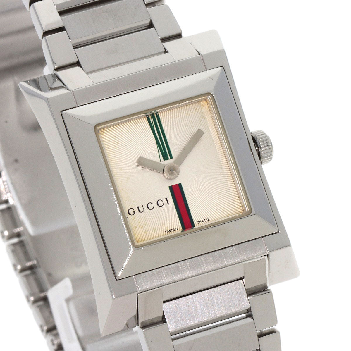 Gucci Watches Quartz 111L Stainless Steel , Stainless Steel Silver Square Face Ivory Dial Women