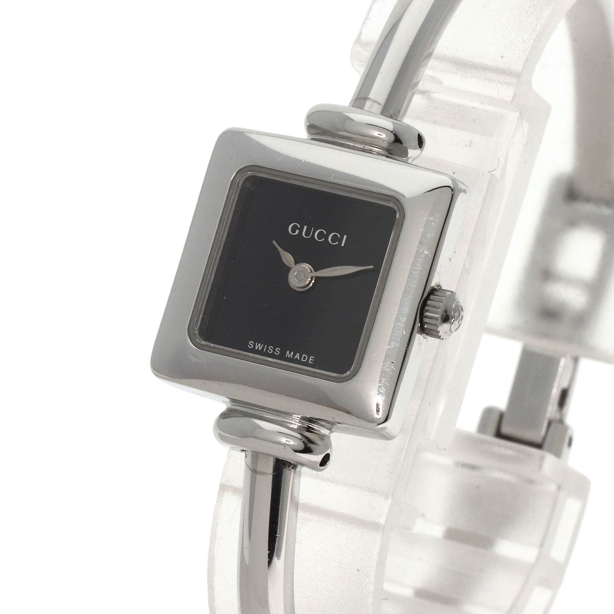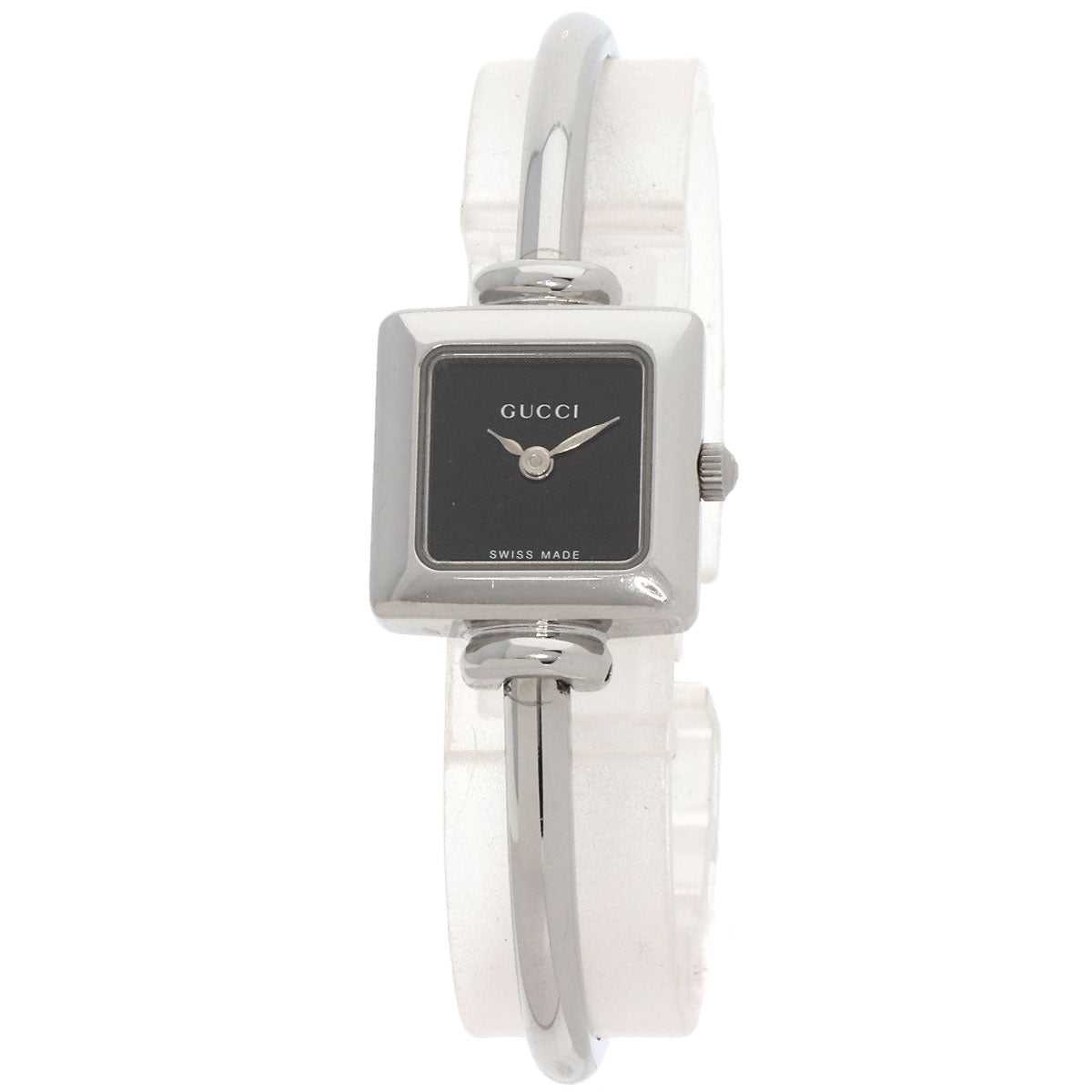 Gucci Watches Quartz 1900L Stainless Steel , Stainless Steel Silver Square Face Black Dial Women