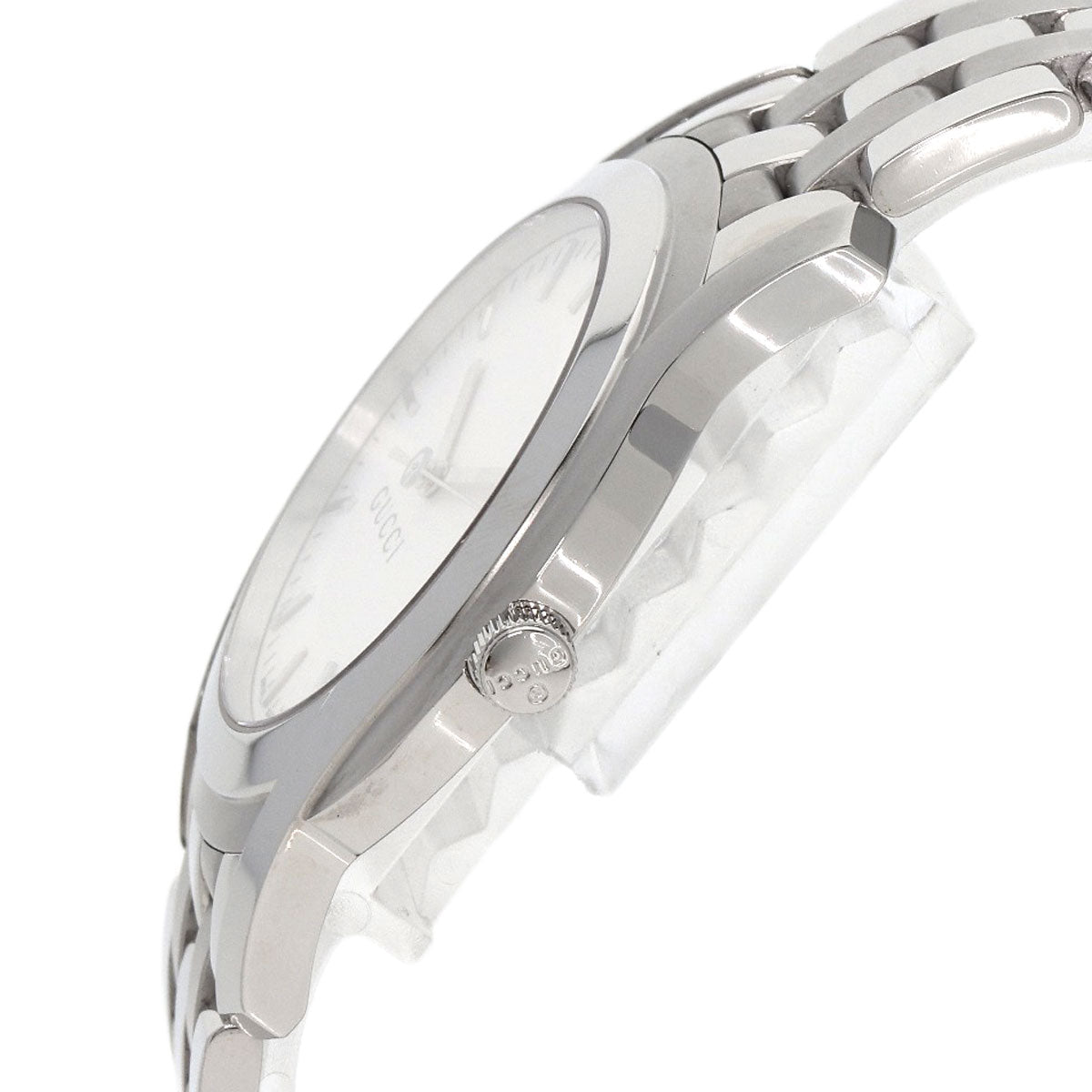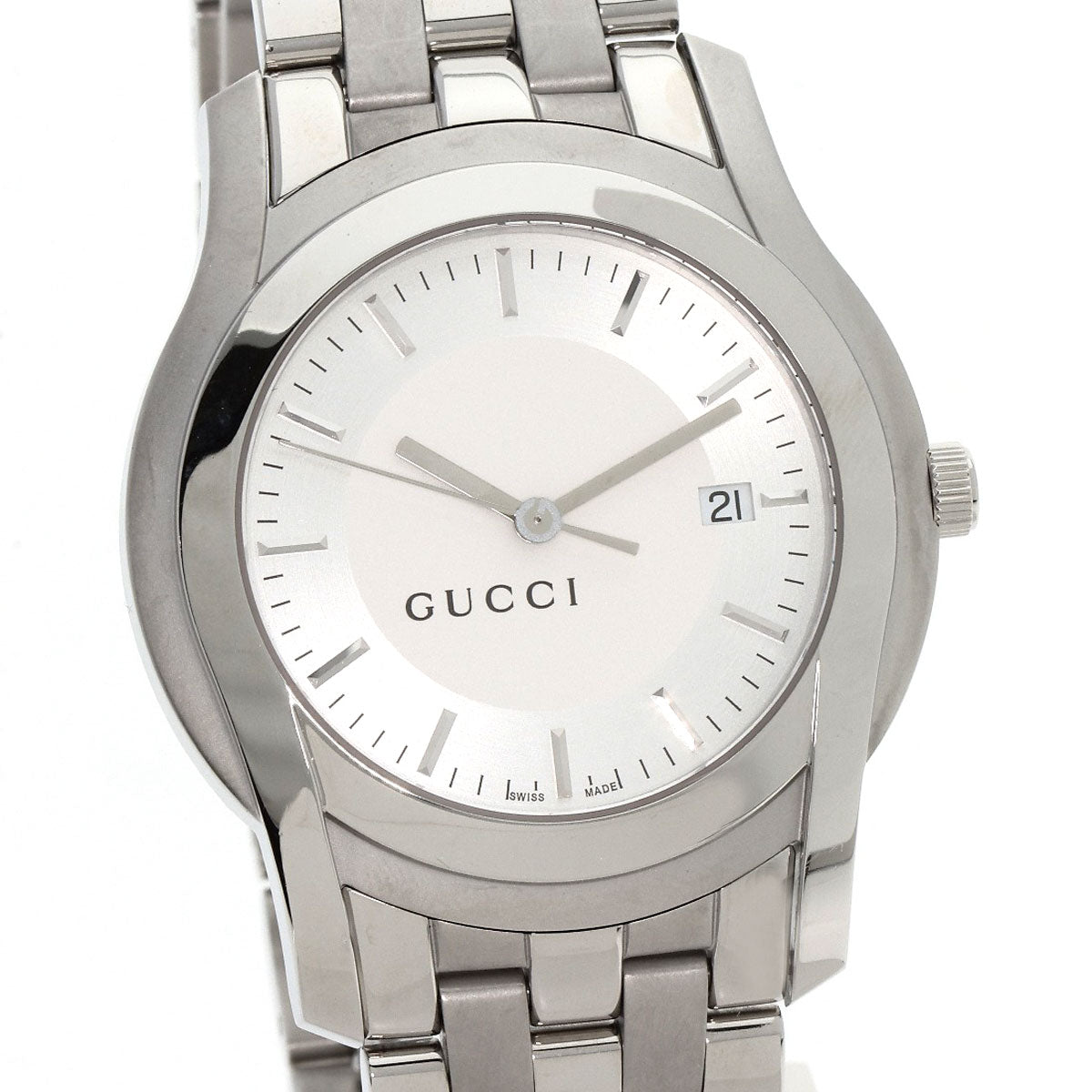 Gucci Watches Quartz 5500Xl Stainless Steel , Stainless Steel Silver Round Face Silver Dial Mens