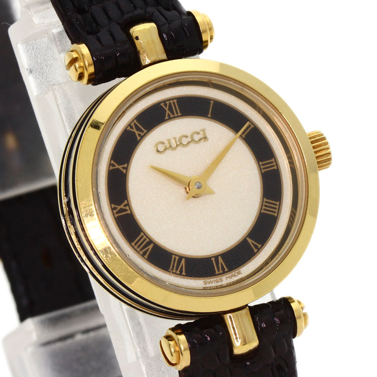 Gucci Watches Quartz Gold Plated, Leather Gold Sherry Line Ivory Dial Women