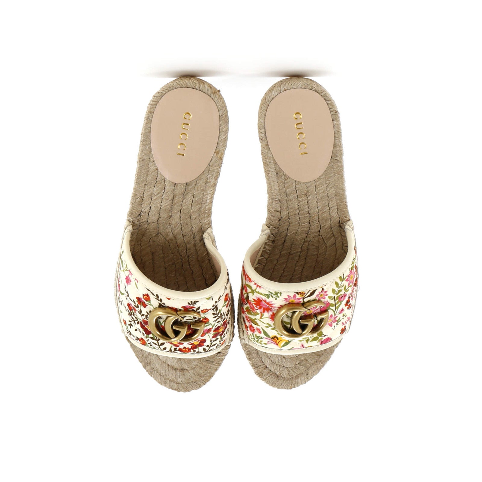 Gucci Women'S Gg Marmont Espadrilles Slide Sandals Quilted Printed Canvas