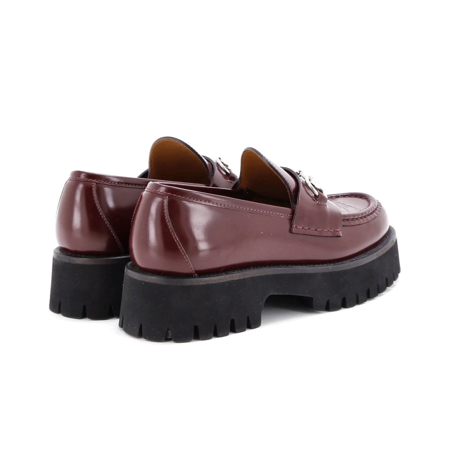 Condition: Very good. Creasing, scuffs, and marks throughout, darkening and marks in interior, peeling and discoloration on outer soles, scratches on hardware.