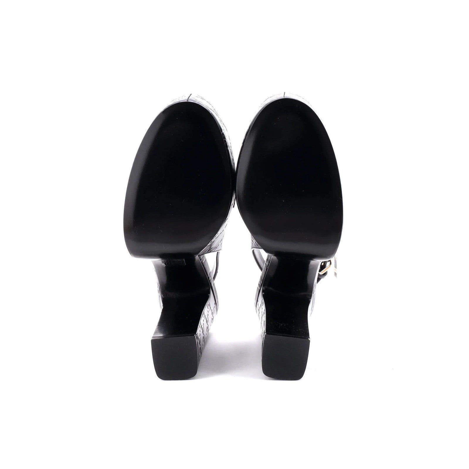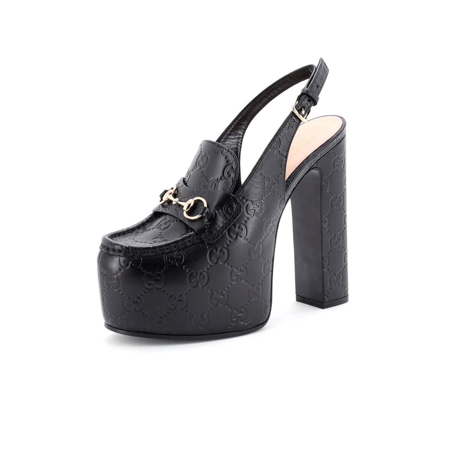 Gucci Women'S Horsebit Platform Slingback Loafer Pumps Gg Embossed Leather