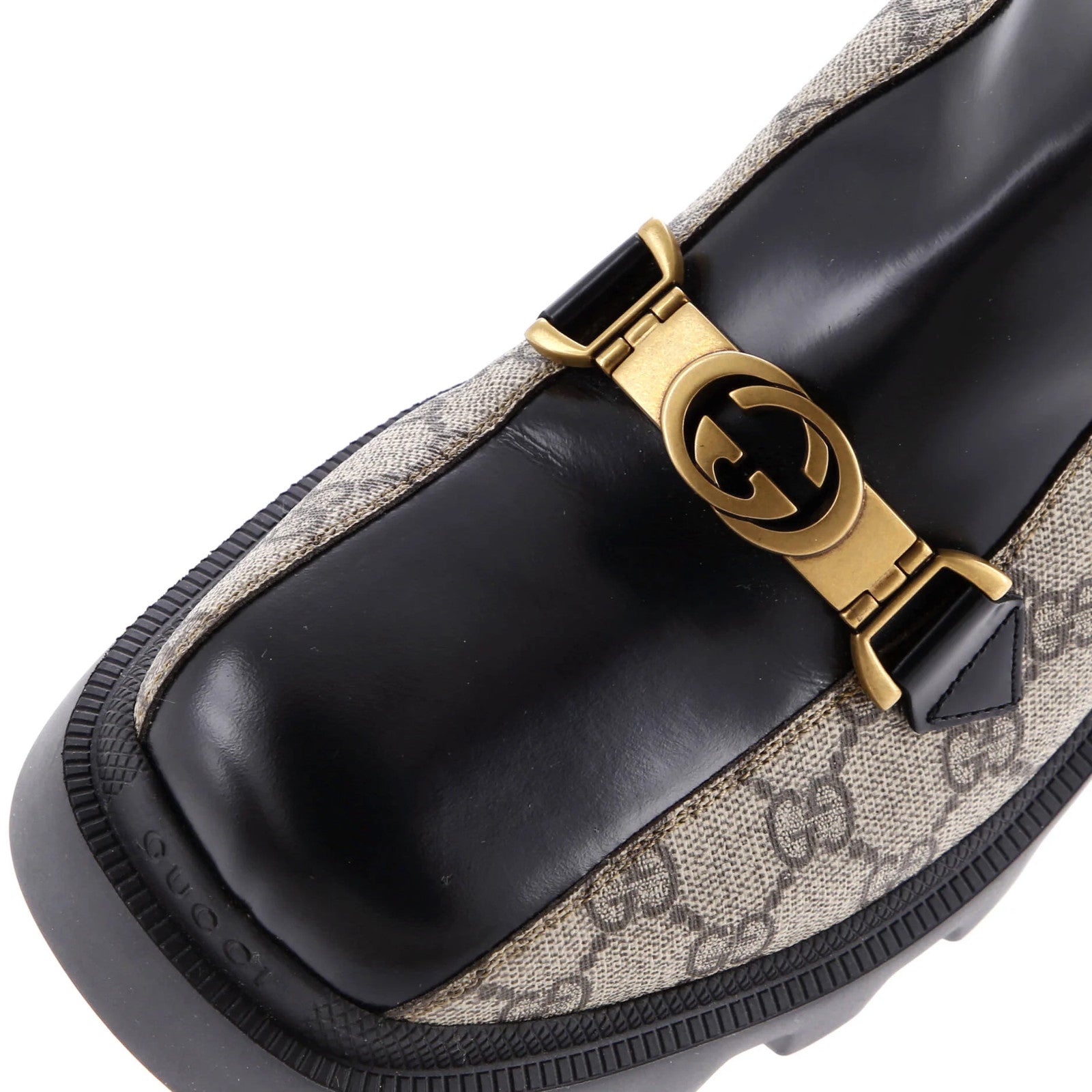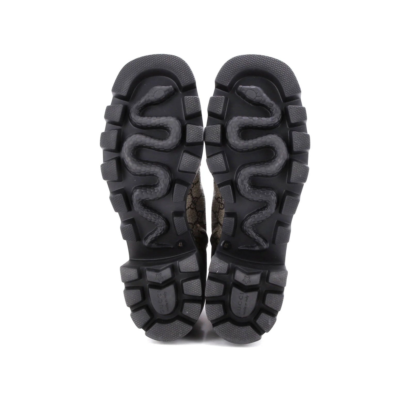 Gucci Women'S Interlocking G Lug Sole Ankle Boots Gg Coated Canvas With Leather