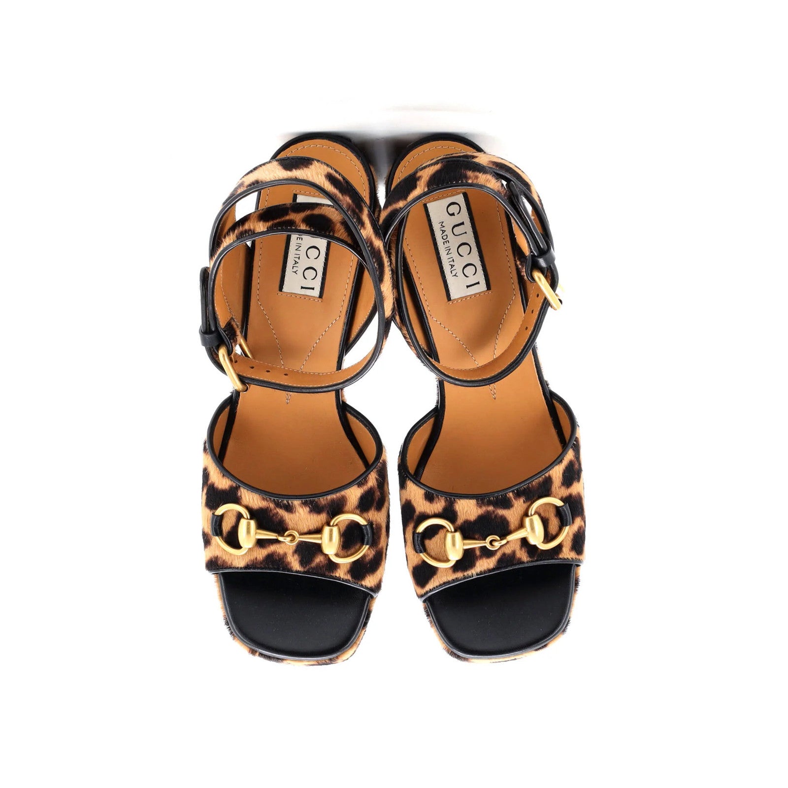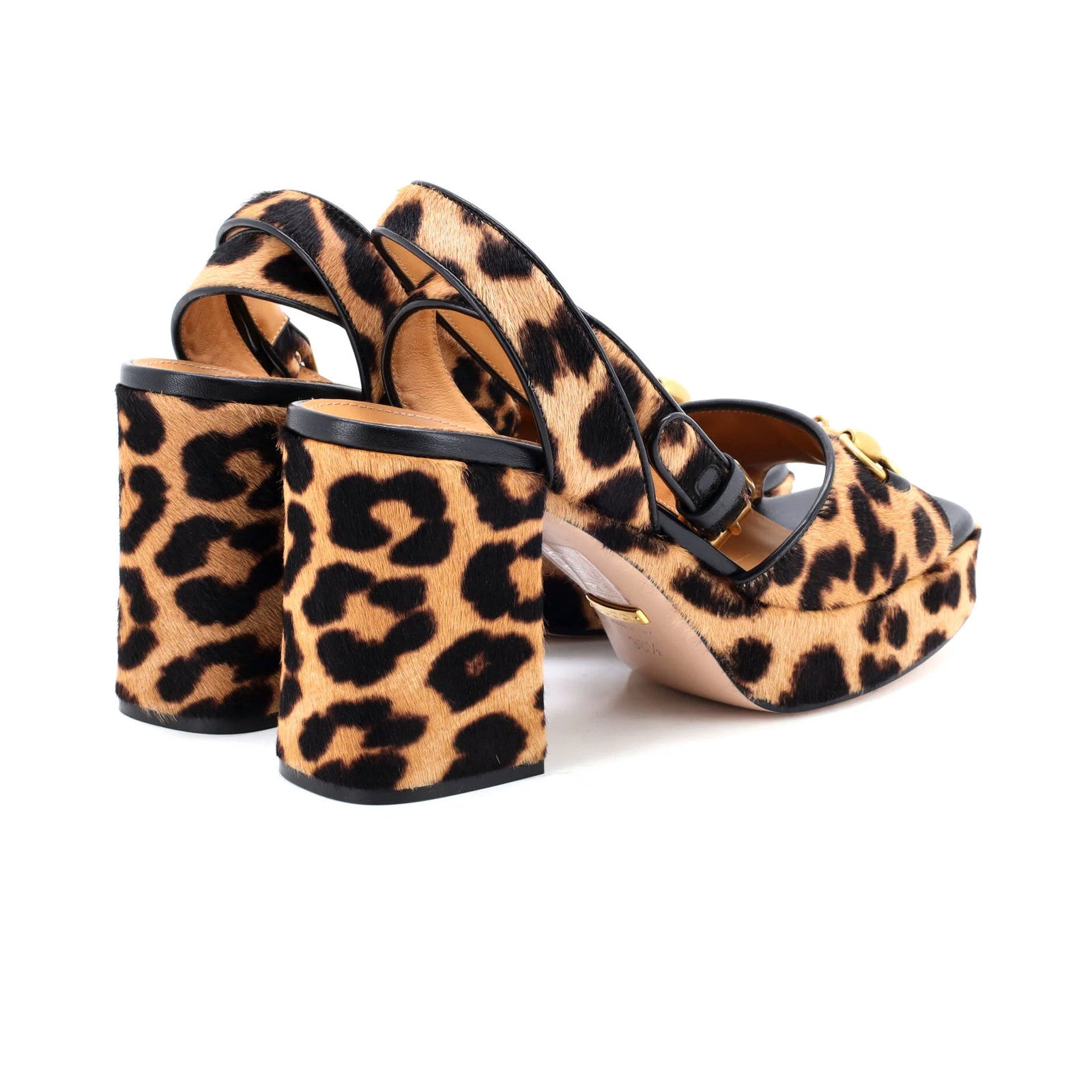Gucci Women'S Lady Horsebit Heeled Sandals Printed Pony Hair