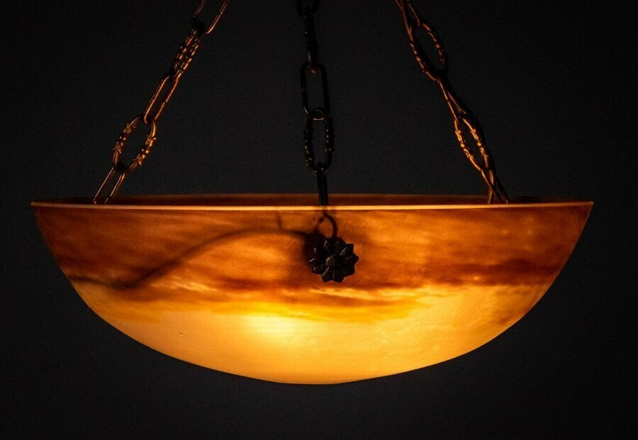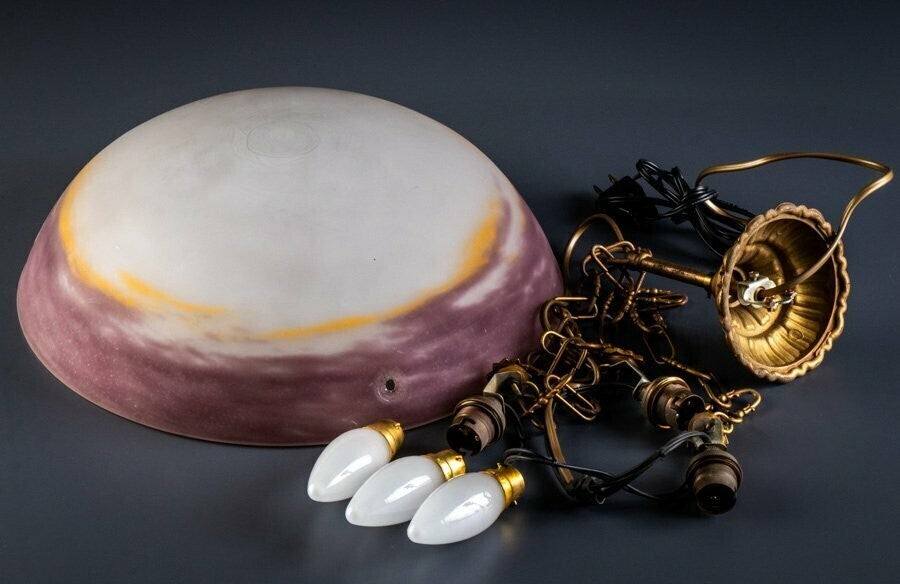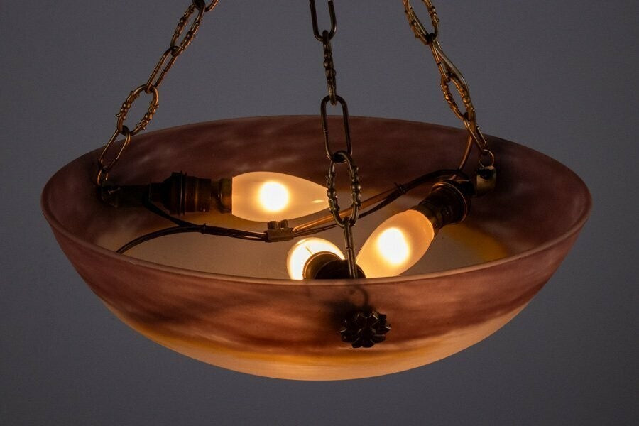 Gv Croismare Signed Chandelier Gilt Bronze Art Glass French Art Deco Excellent