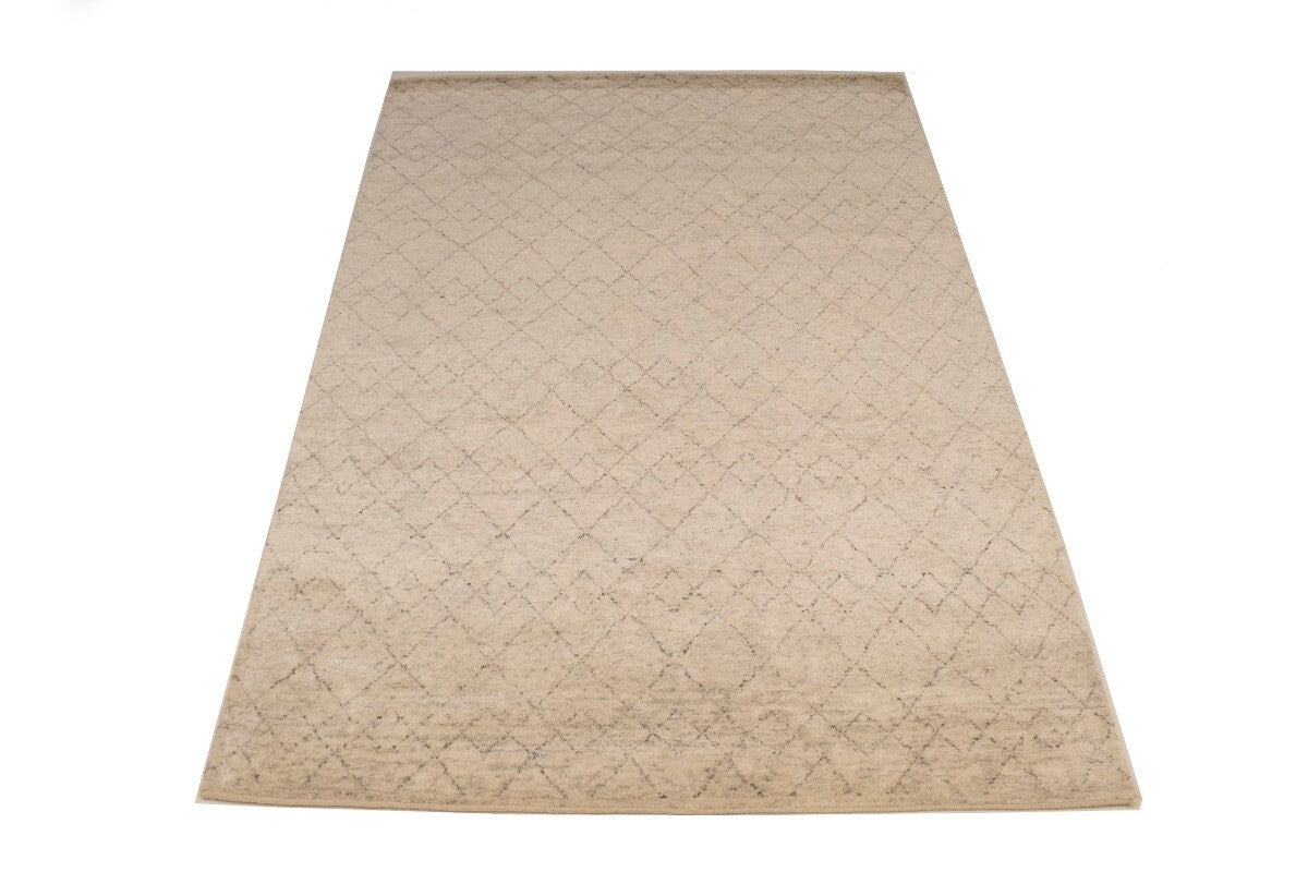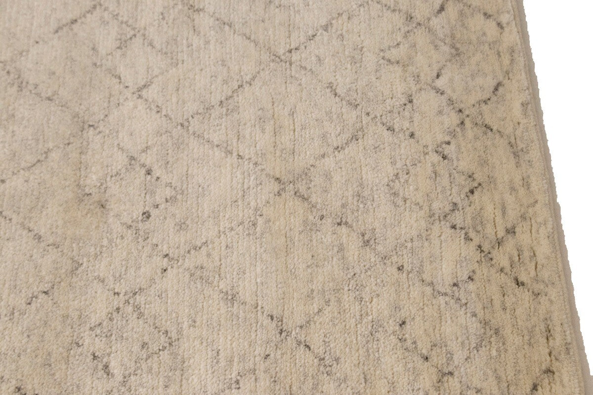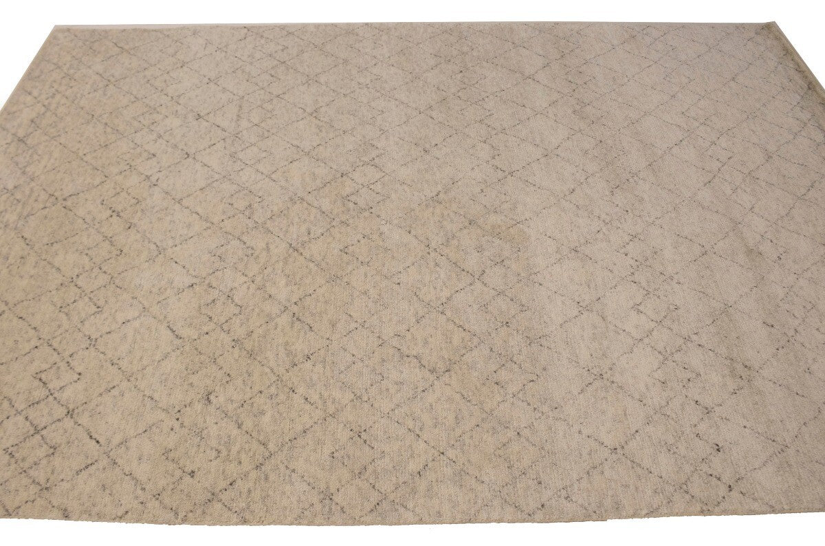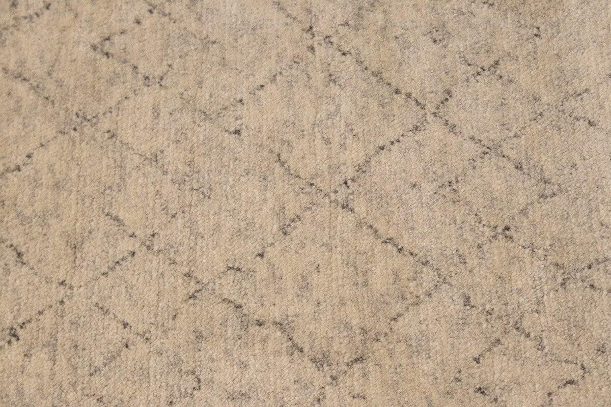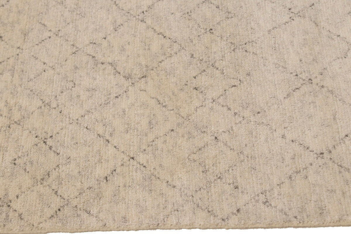 Hand-Knotted Beige Geometric Moroccan Rug Plush