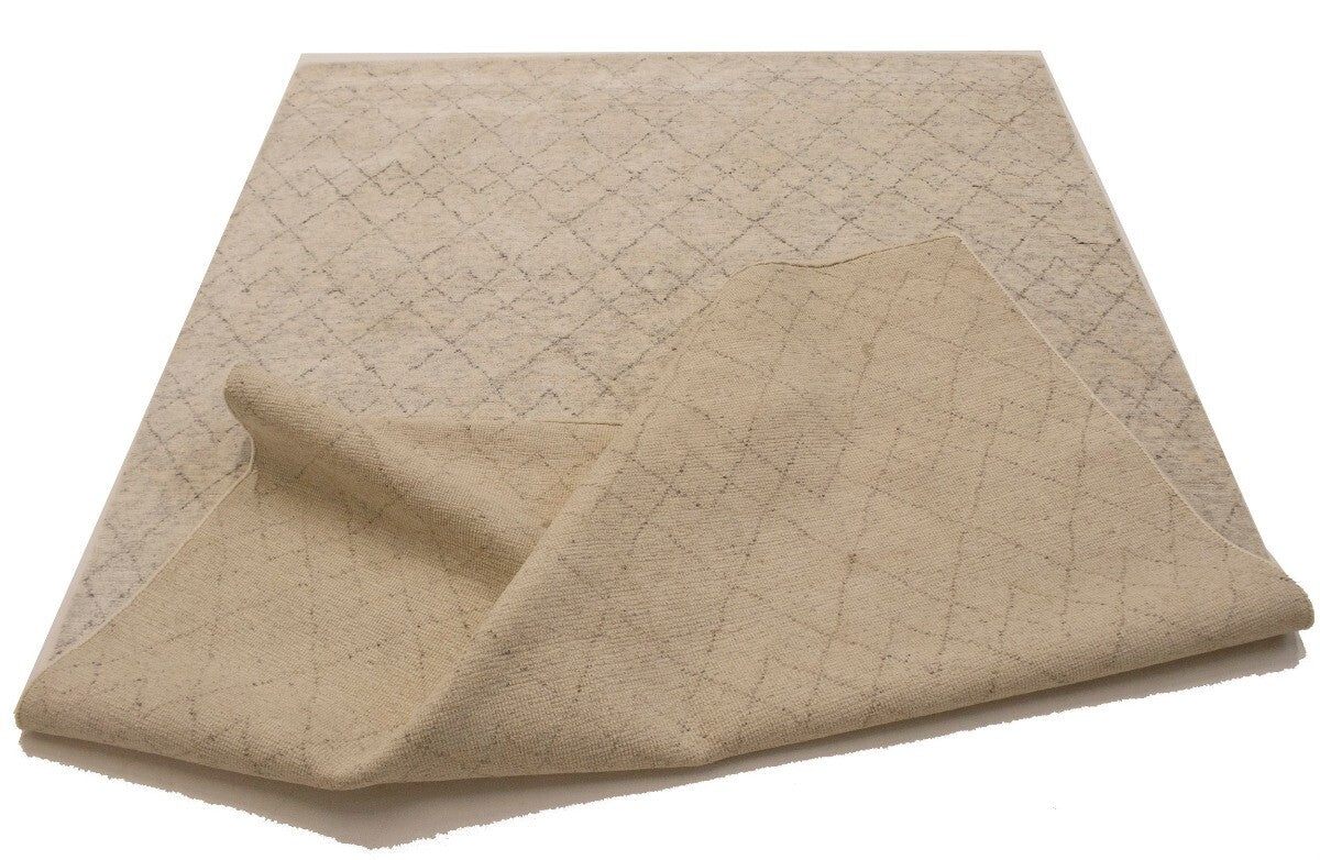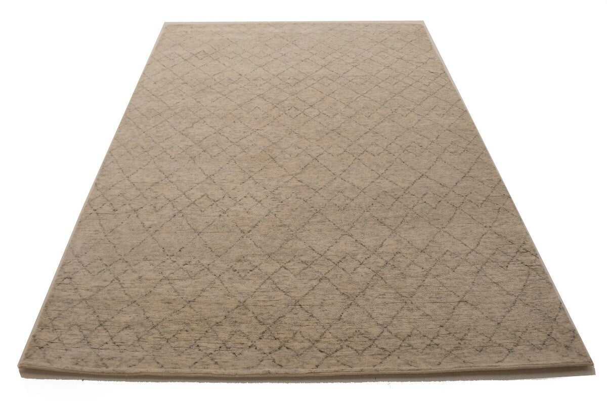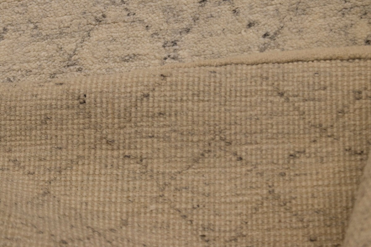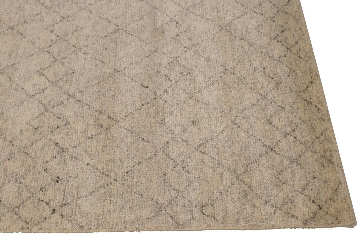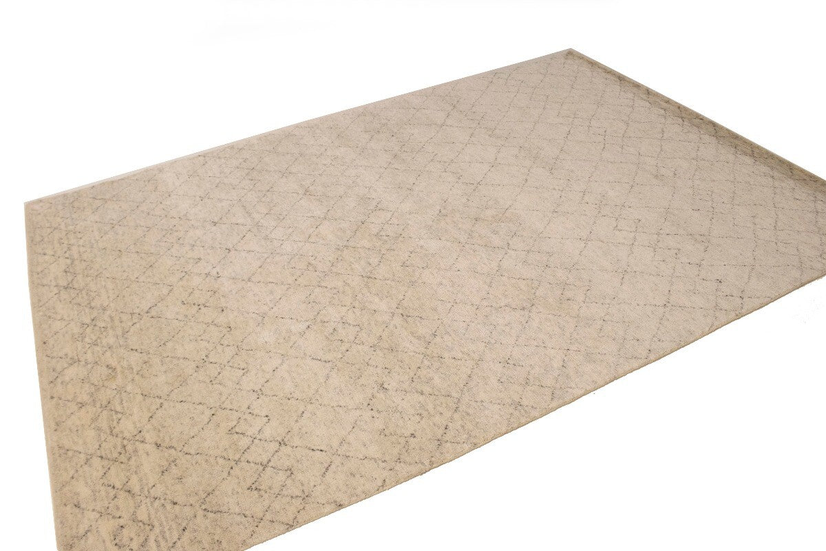 Hand-Knotted Beige Geometric Moroccan Rug Plush
