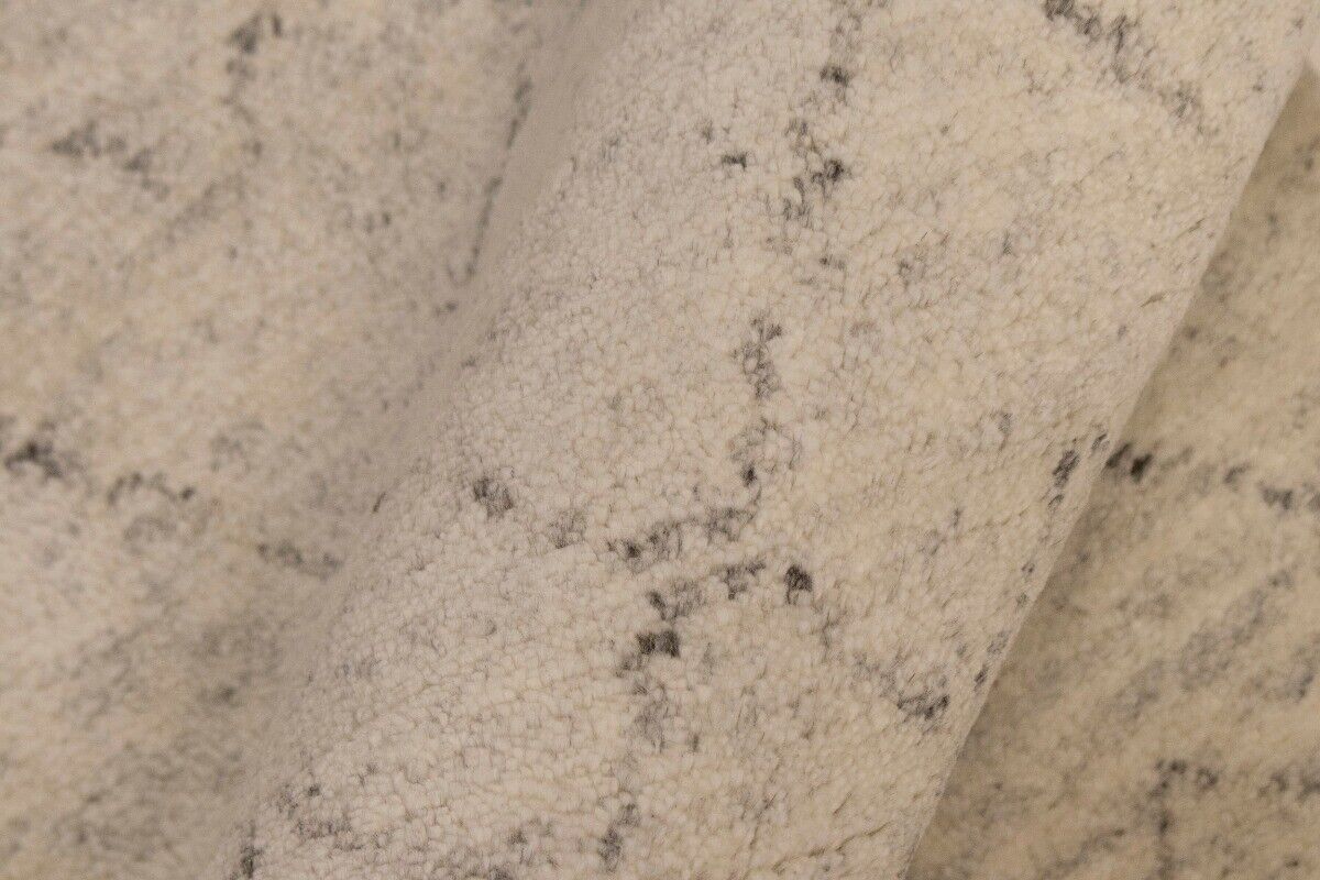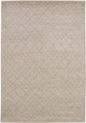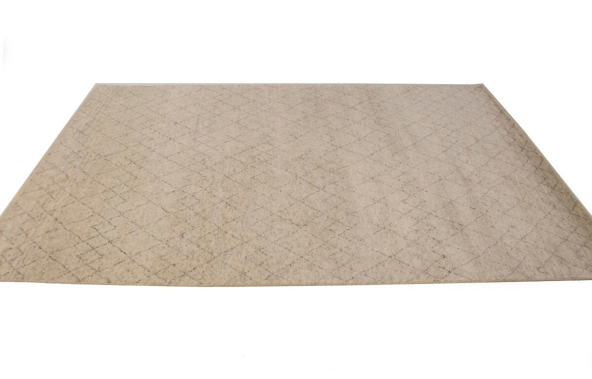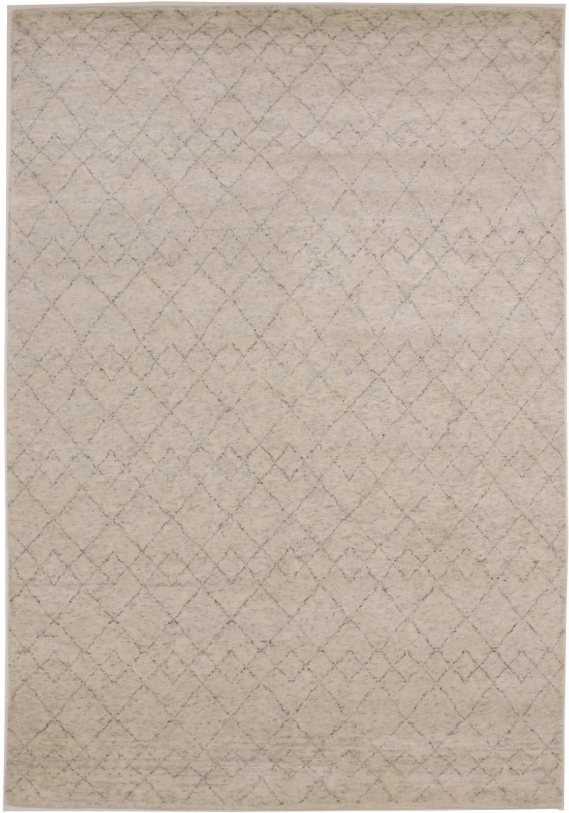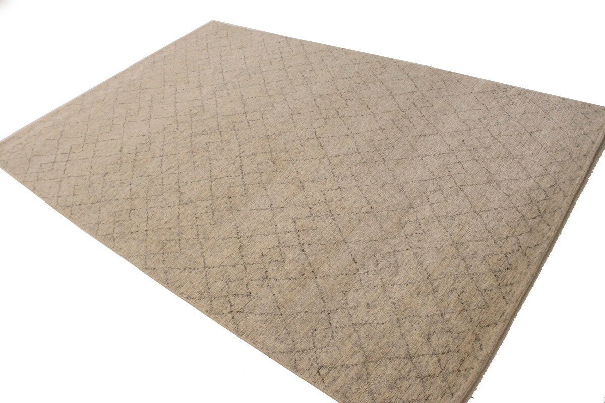 Hand-Knotted Beige Geometric Moroccan Rug Plush