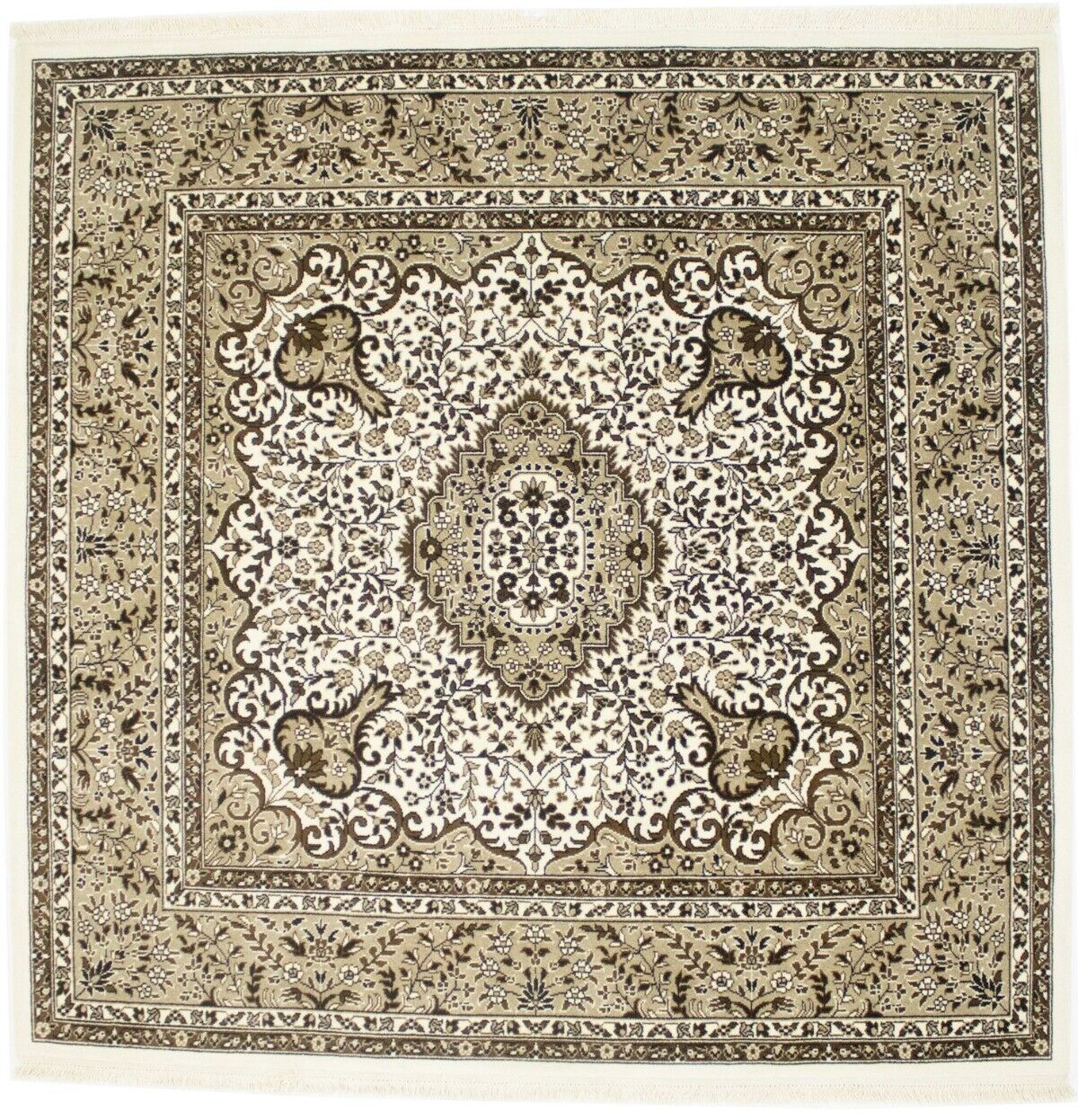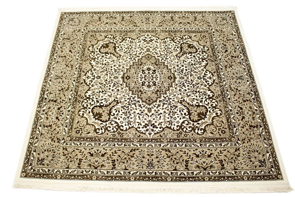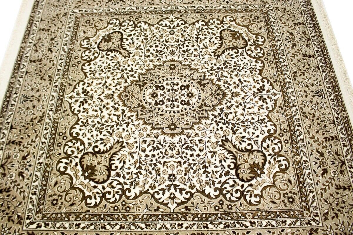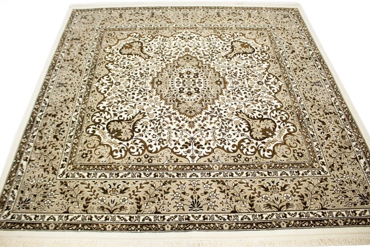 Hand-Knotted Cream Kirman Square Rug Oriental