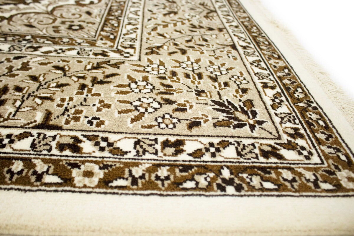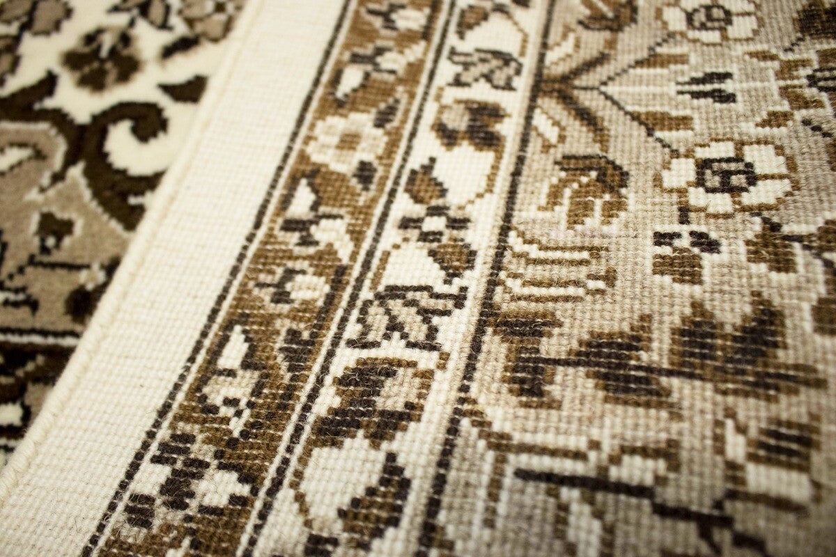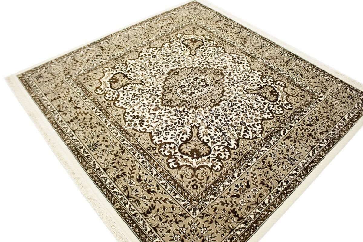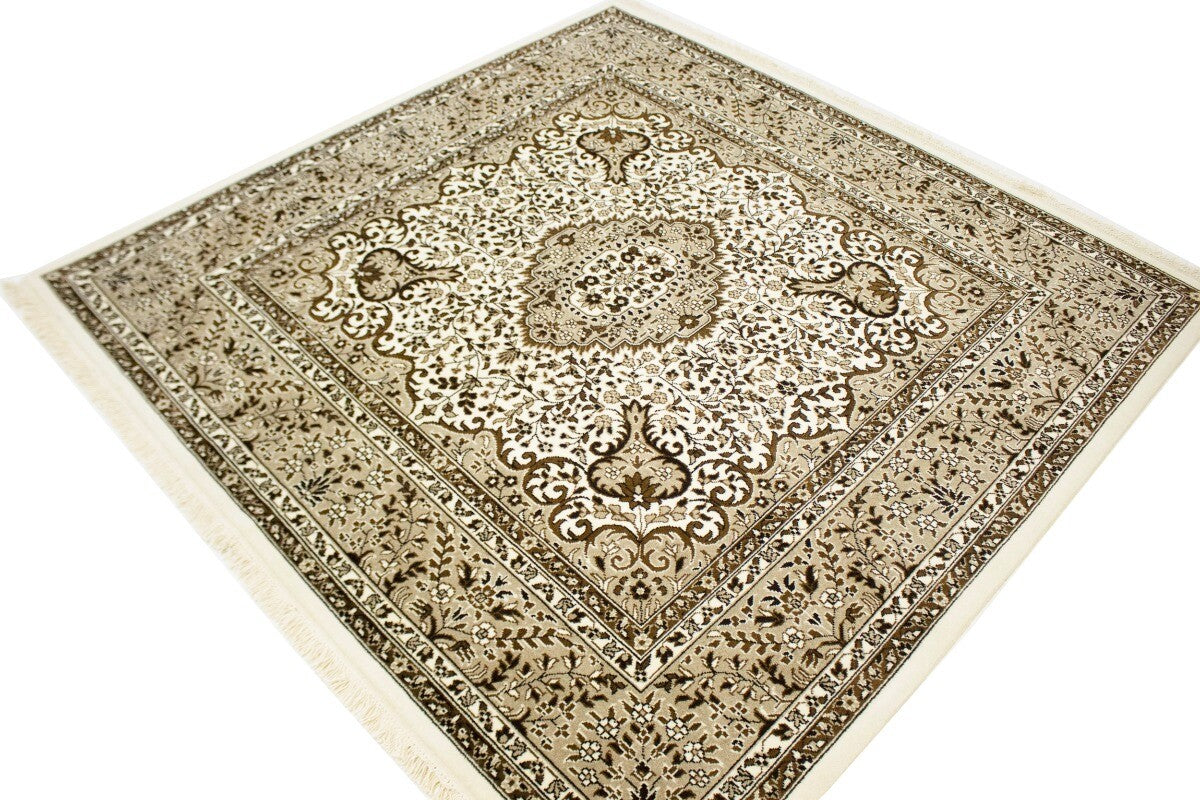 Hand-Knotted Cream Kirman Square Rug Oriental