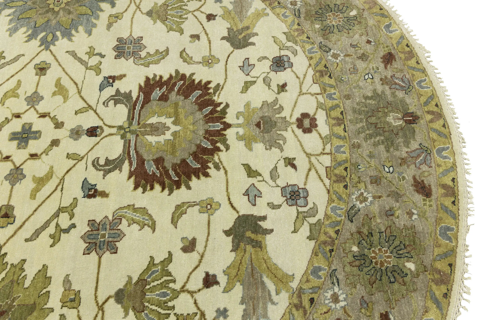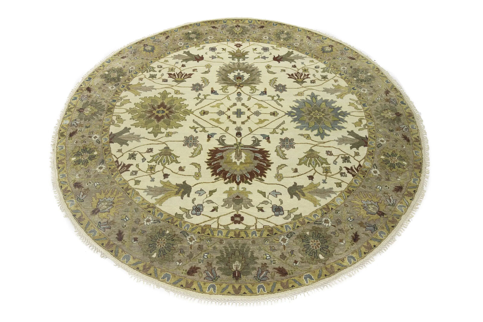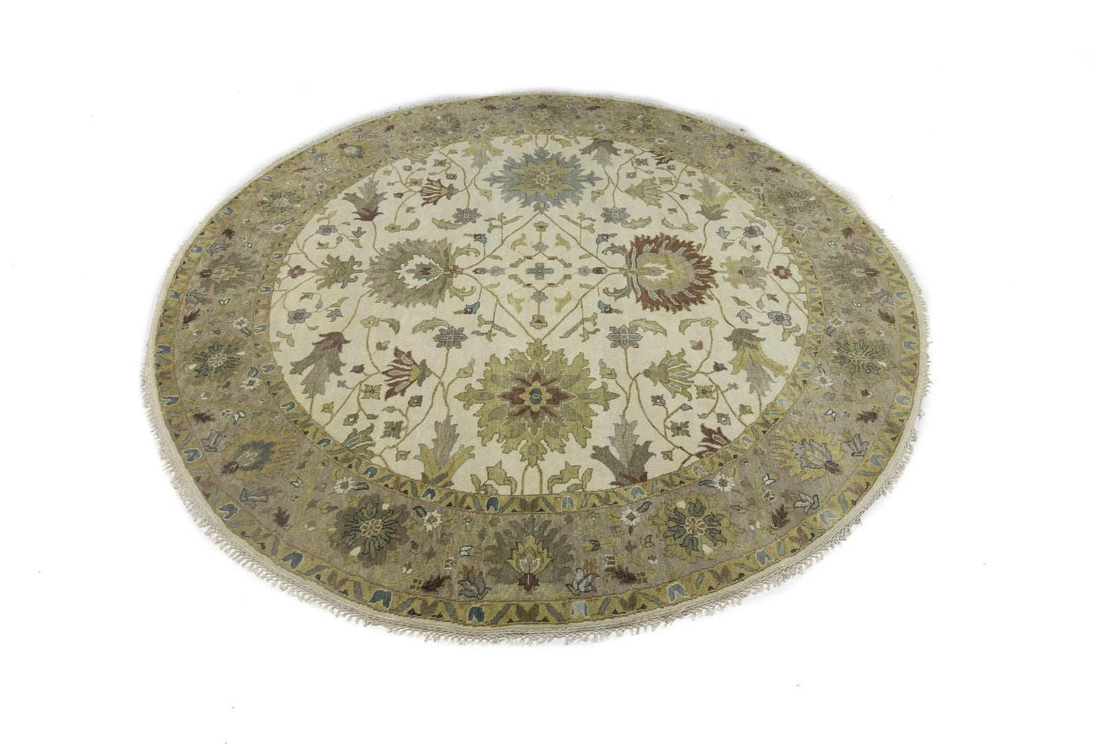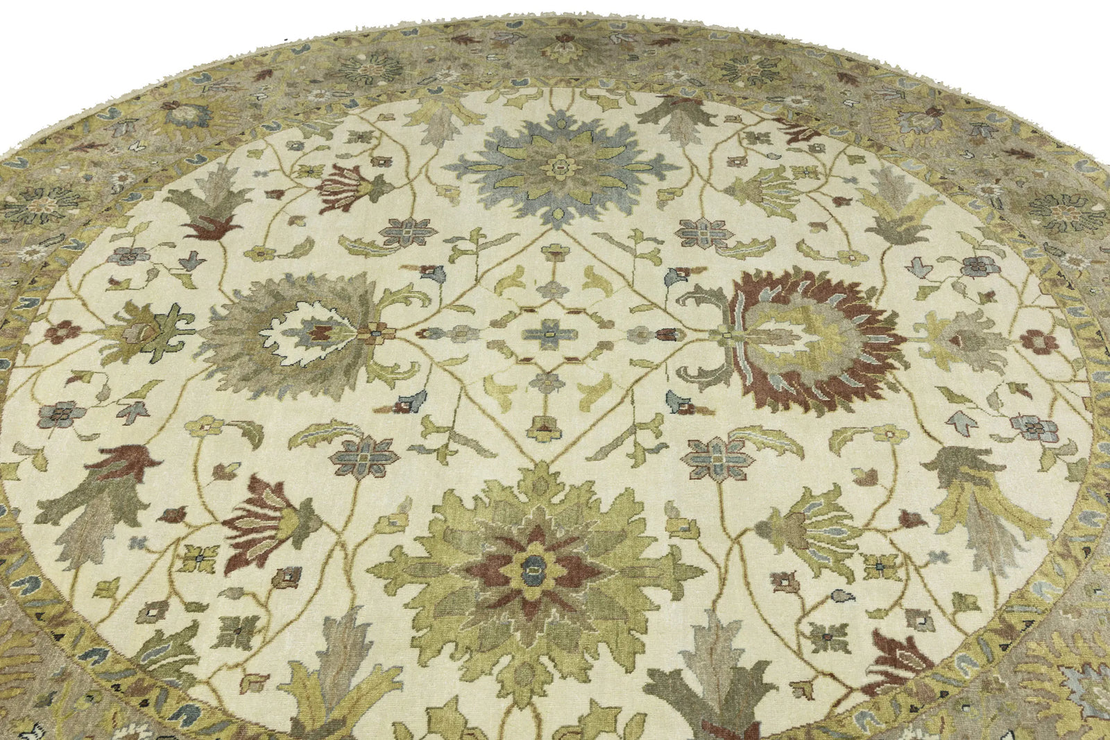 Hand-Knotted Cream Round Oushak Chobi Oriental