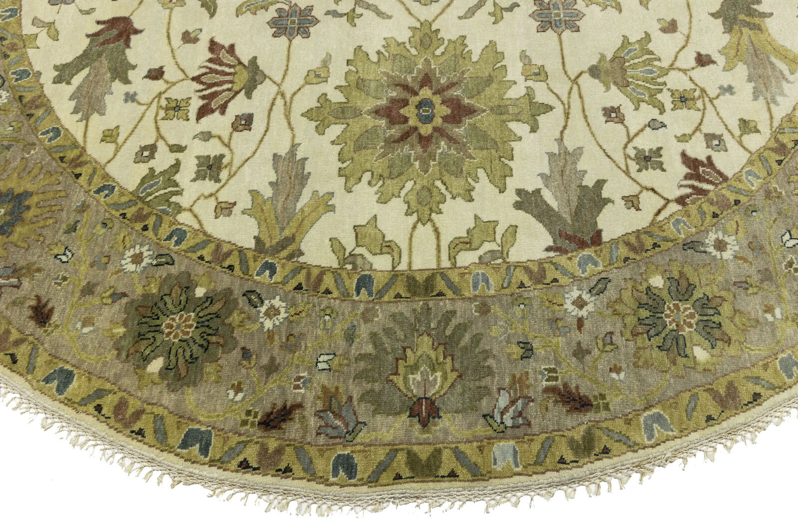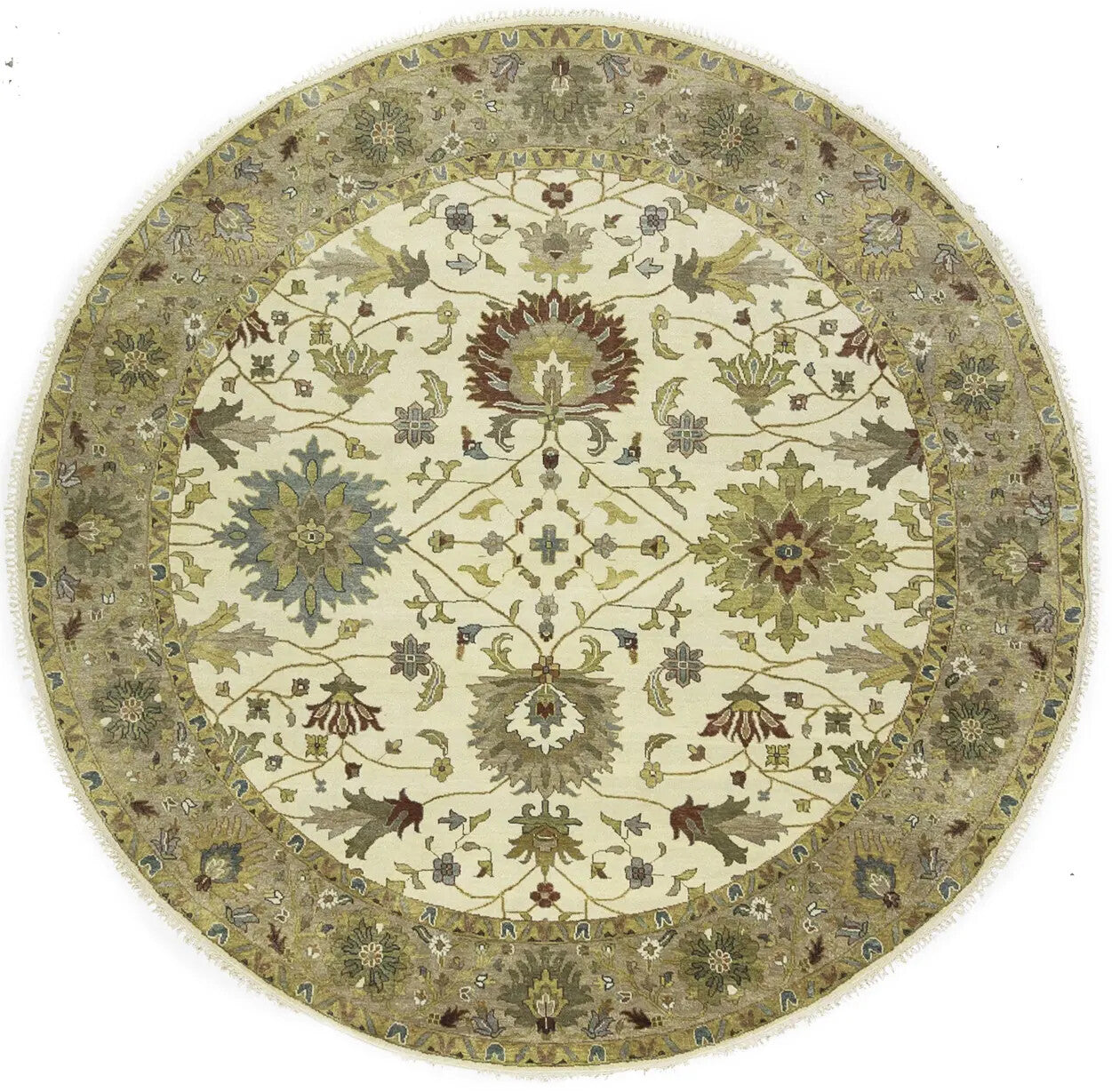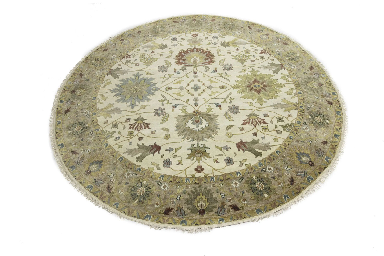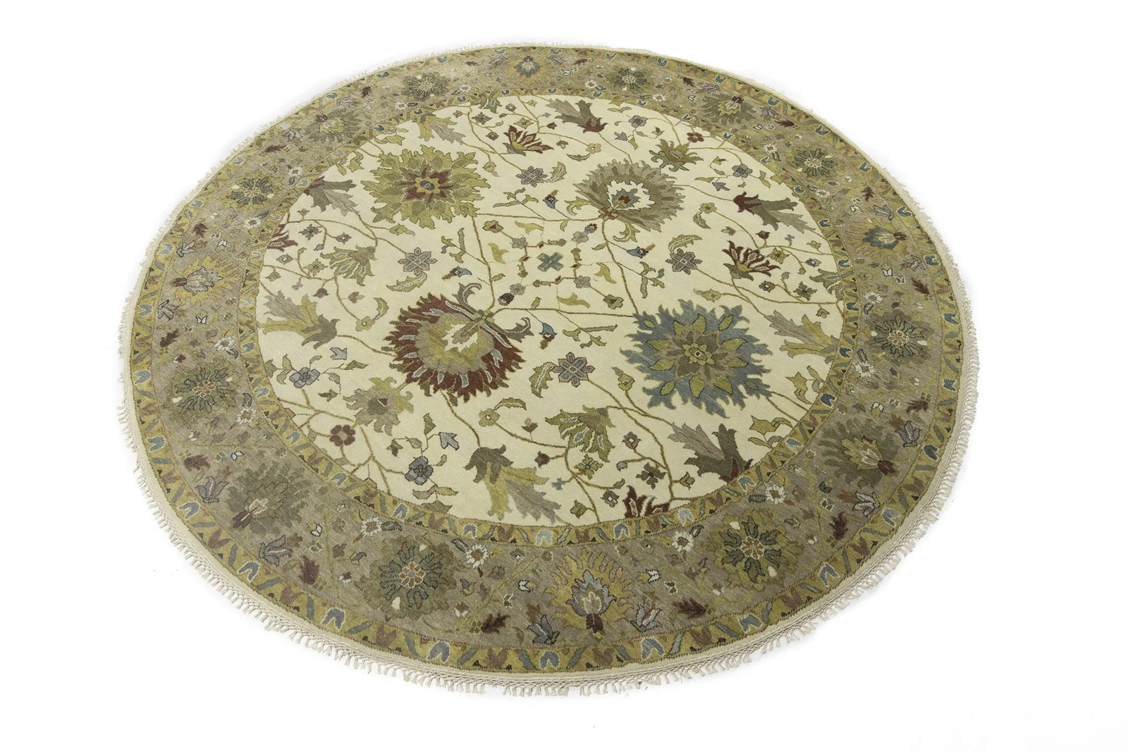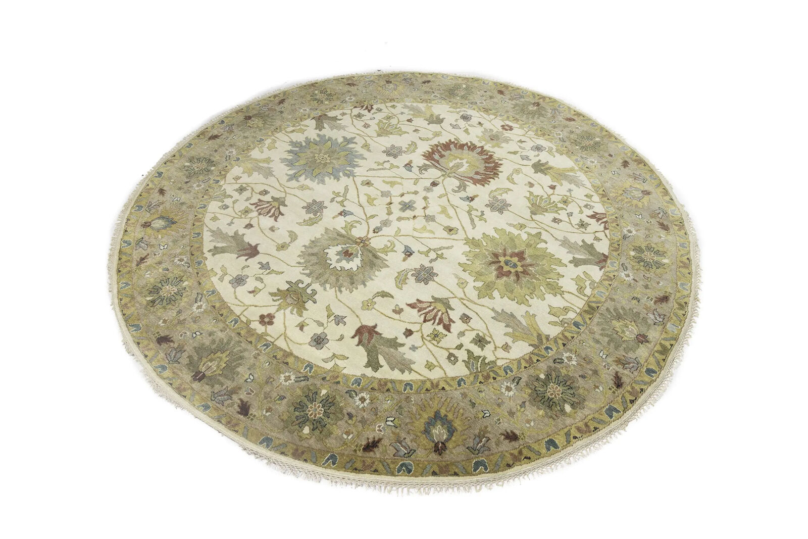 Hand-Knotted Cream Round Oushak Chobi Oriental