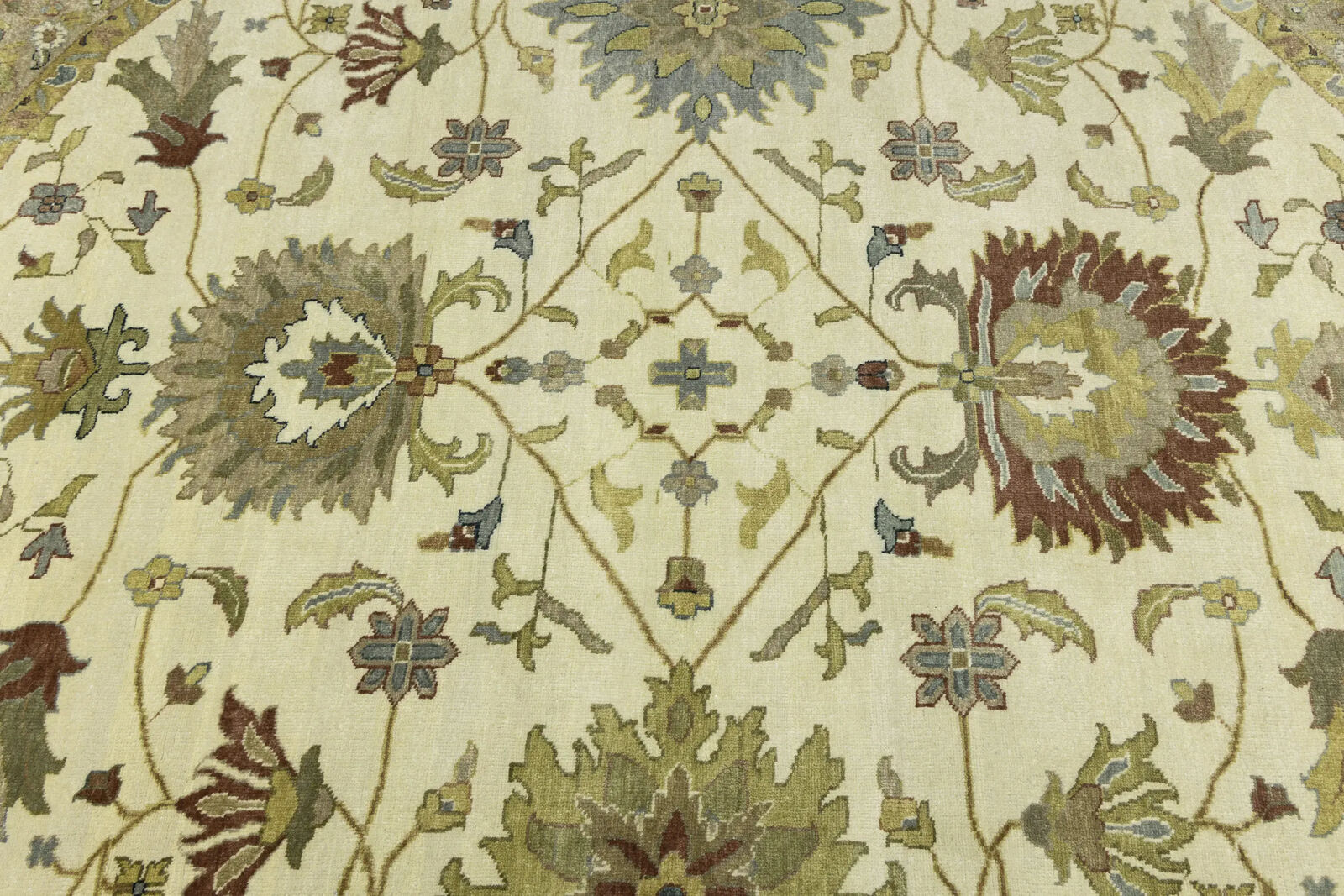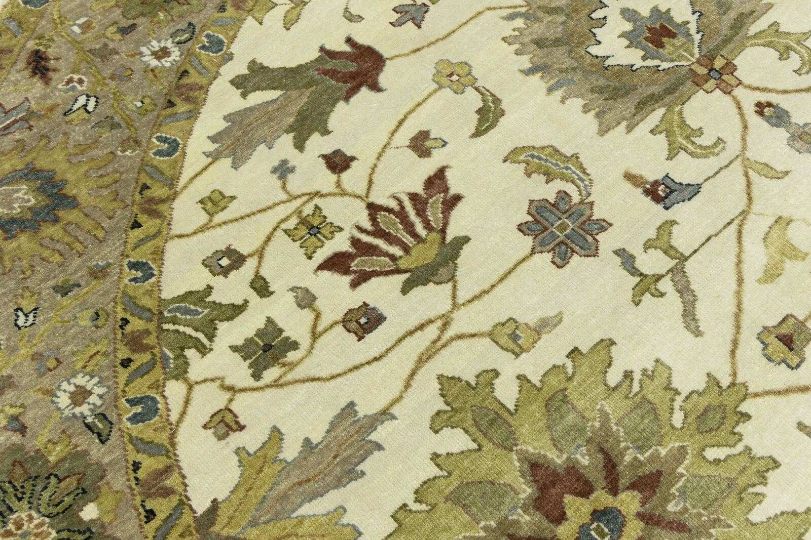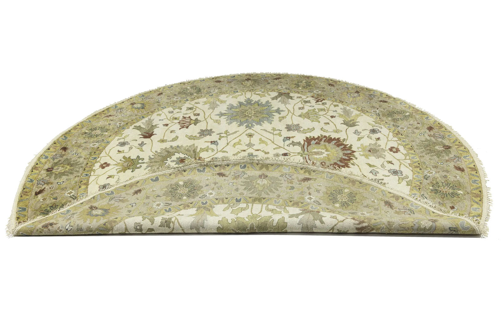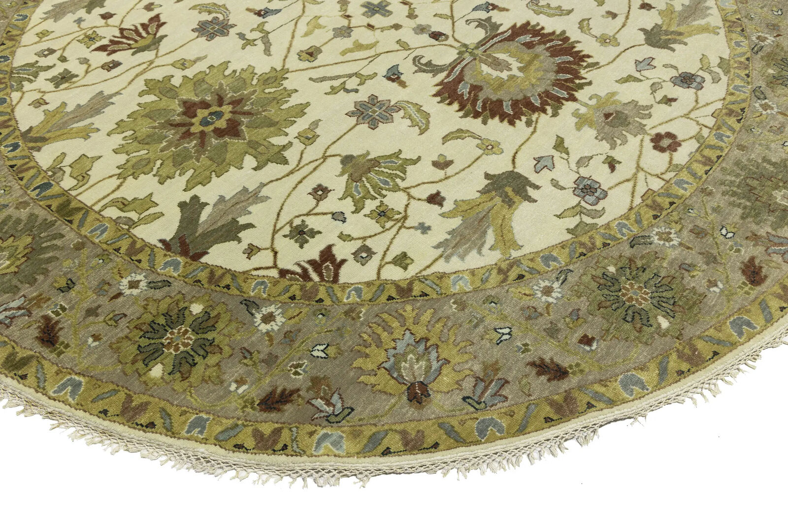 Hand-Knotted Cream Round Oushak Chobi Oriental