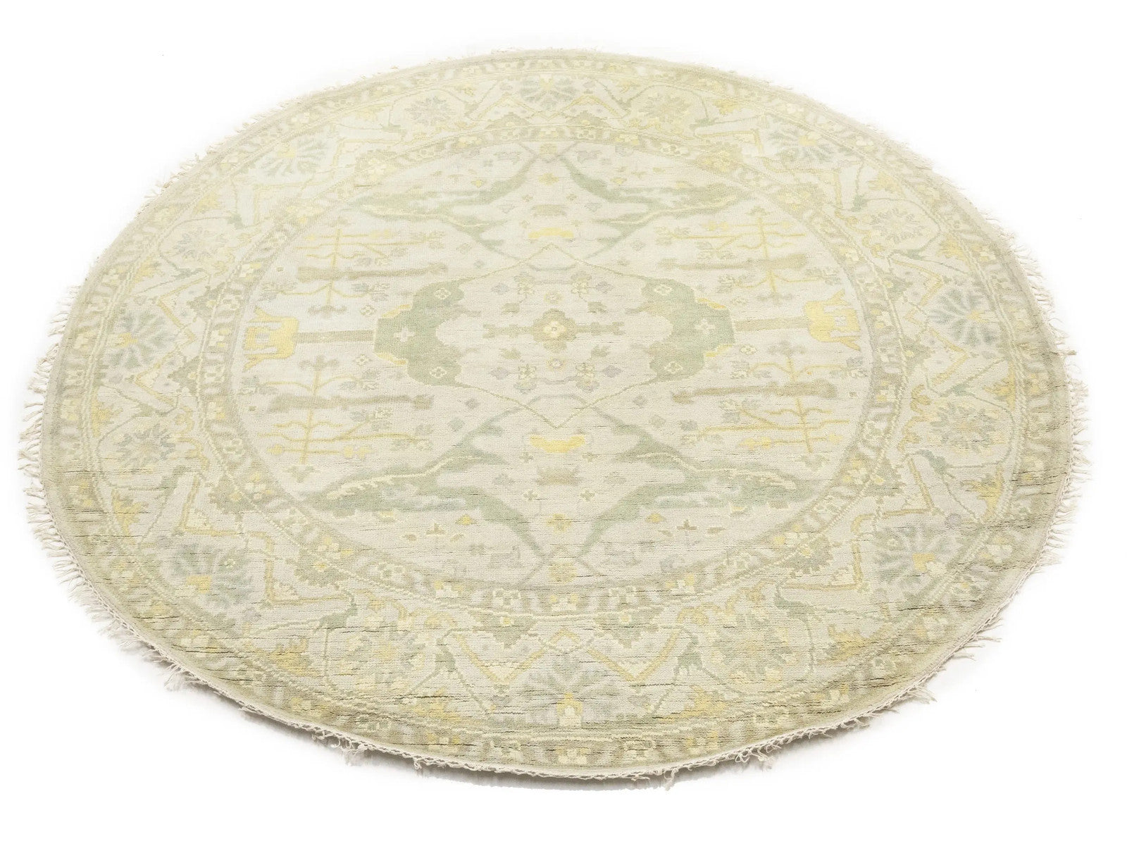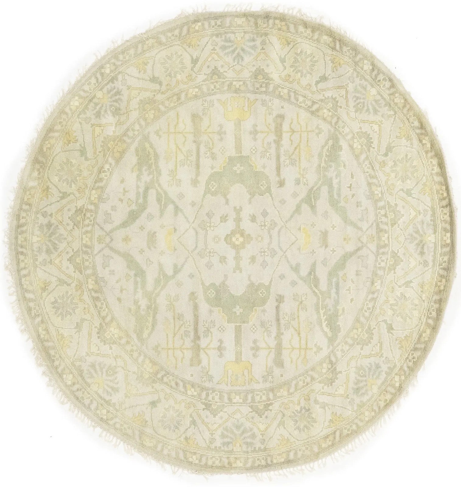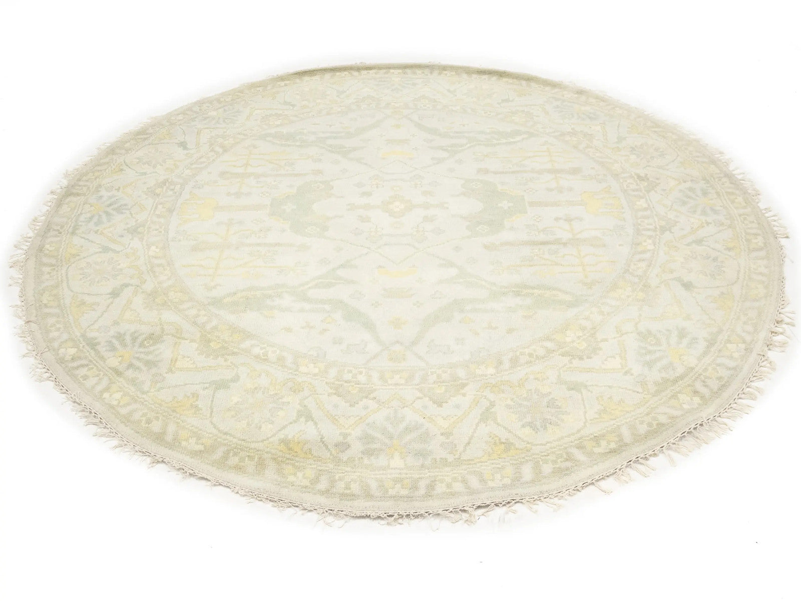 Hand-Knotted Cream Round Oushak Chobi Oriental